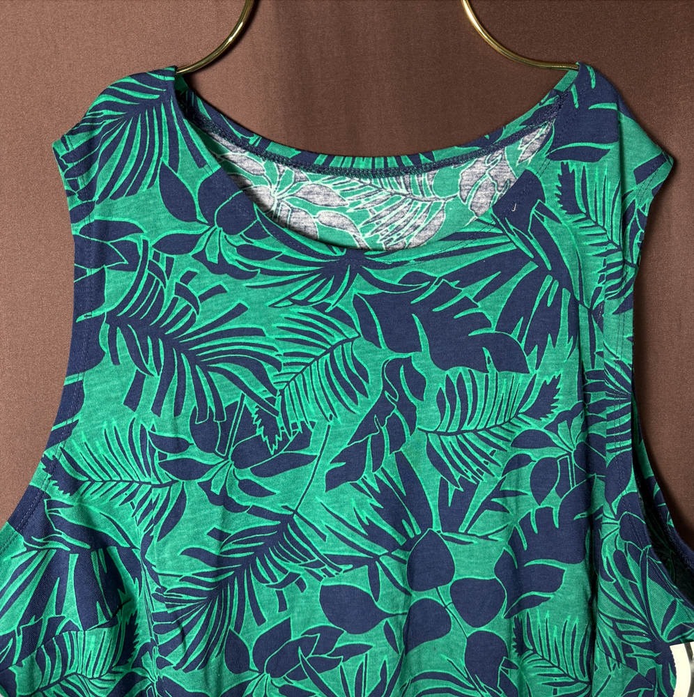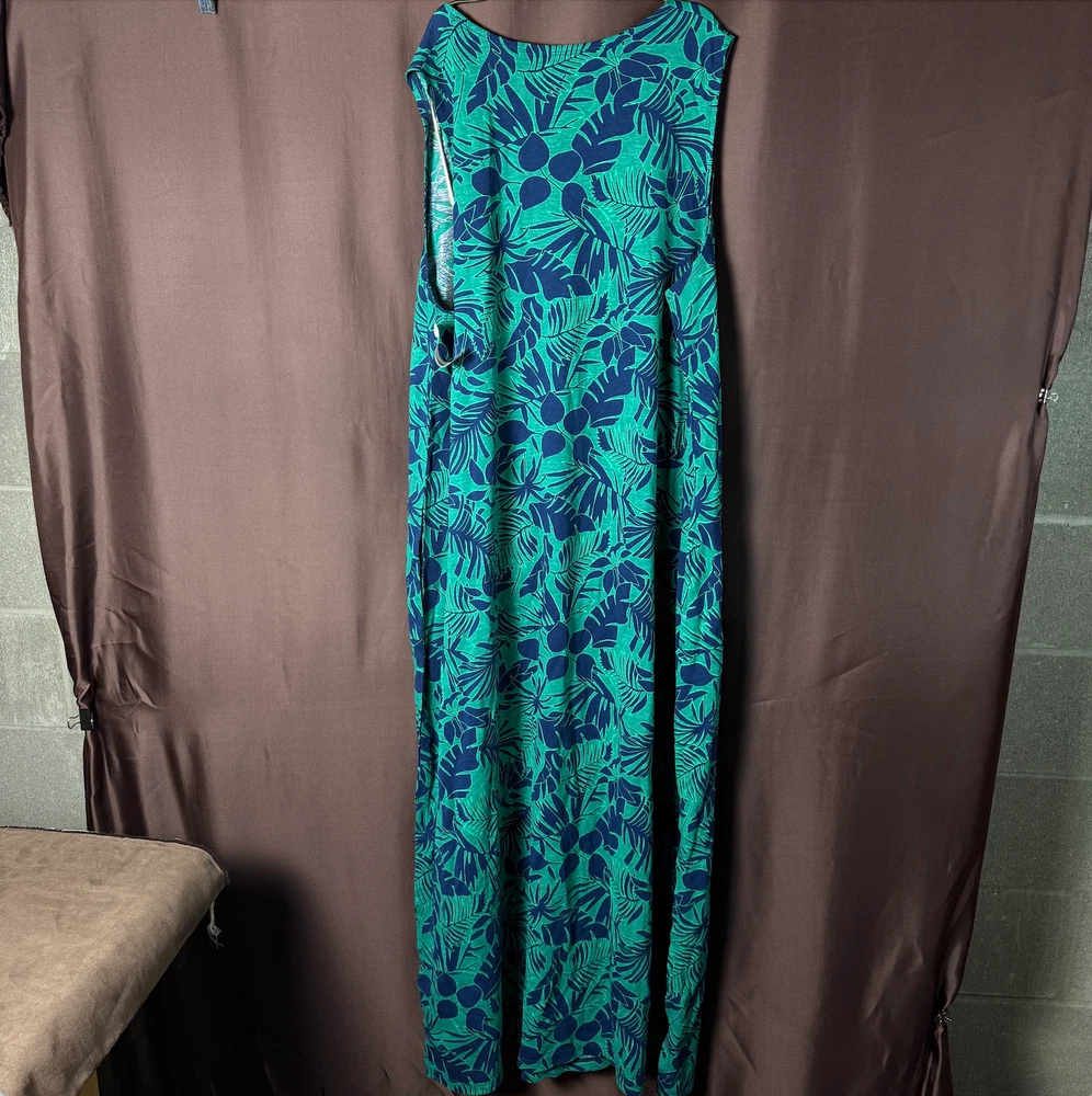 Lands' End Women's 18, L-2X LONG Sleeveless Swim Cover-up Maxi Dress Cotton Jersey Navy/Emerald Palm Foliage Please DM what size you need. Thank you. Size Women's 18 Size Women's L Long Size Women's 2X Long