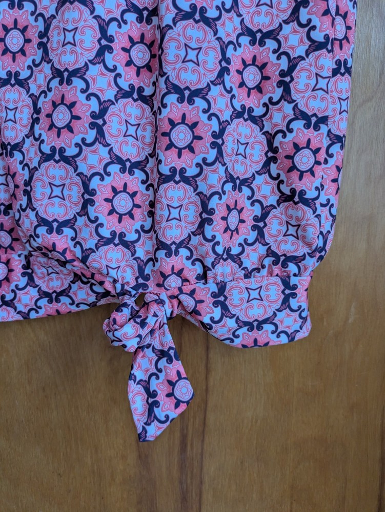 Lands End swim shirt - no cups or lining Comfy and stretchy White background with pink/coral and navy blue medallion pattern