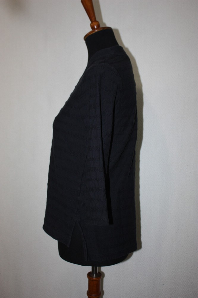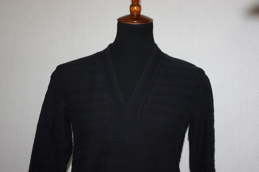 Welcome to Pim's clothing sales Good condition medium weight top. Lightly faded. V-neck collar. Black with textured woven accents. Brand: Lands' End Material: 100% Cotton Size : XS tagged Bust: 17 armpit to armpit Shoulders: 14 Length: 24 back of collar to hem (Ask if you need more measurements) Please Remember all Clothing Items may fit differently depending on Brand, Fit, Use or Prior customization. We strongly urge our customers to check measurements first to guarantee proper fitting. Please be sure to check out our listings frequently for more high quality Designer Brand clothing items at a fraction of the price. We are getting new inventory all the time! You never know what amazing deals you may find :) Shipping discounts will be provided for multiple purchases - Please contact us after multiple purchases for an updated invoice.