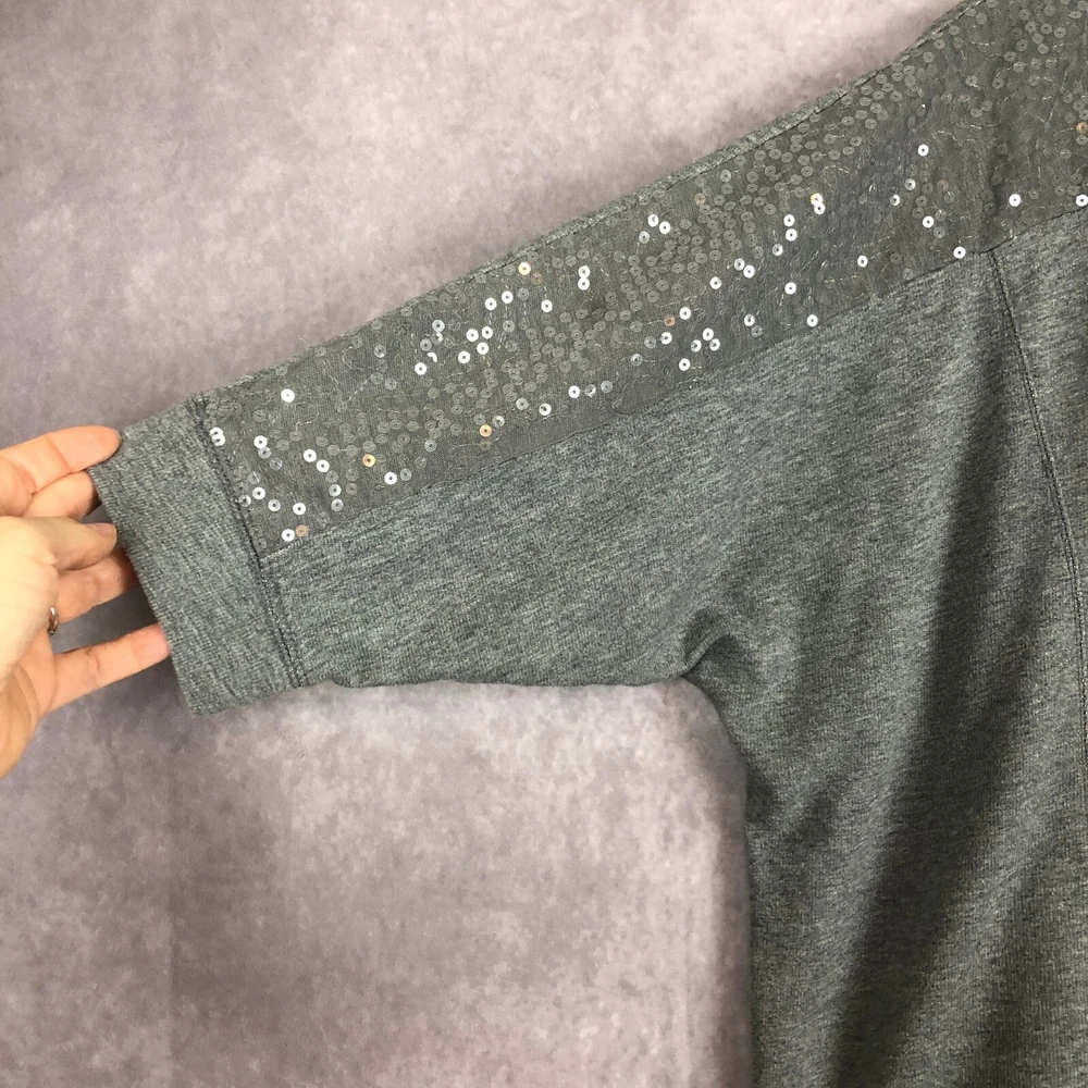 Lane Bryant Gray Pullover Sweater Top Size 18/20W 3/4 length sleeve's Clear sequins sewn on the shoulders & sleeve's Measures approximately: 26.5" armpit-armpit 27.5" length Good preowned condition one small section has some sequins missing see last picture. (K)