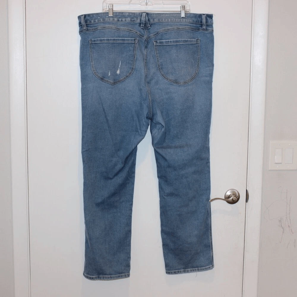 Lane Bryant pair of Signature Fit Body Icon straight jeans in a destructed light wash. Fading and whiskering. Belt loops. Five pockets. Button and zip-fly closure. The curved yoke is cut to contour your curves. Flex Magic Waistband. The no-gap, stretch waistband that moves with you for all-day comfort. FIT: Signature. Our most popular fit for those who are proportional from waist through the hip and thigh. LEG SHAPE: Straight. Straight cut from hip to hem - Jeans - Size: 22 - Conditions are Pre-owned (No flaws, no holes, no stains) - Measurements are on the pictures Feel free to send me your offer :) Bundle and Save