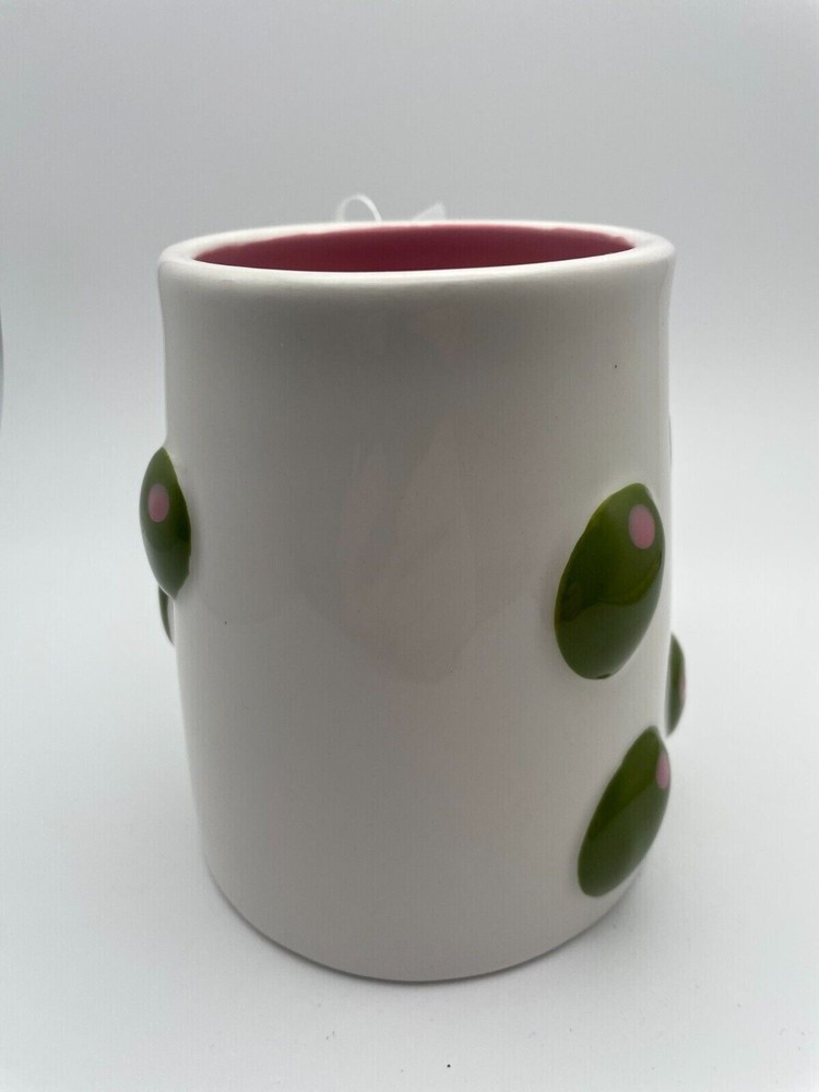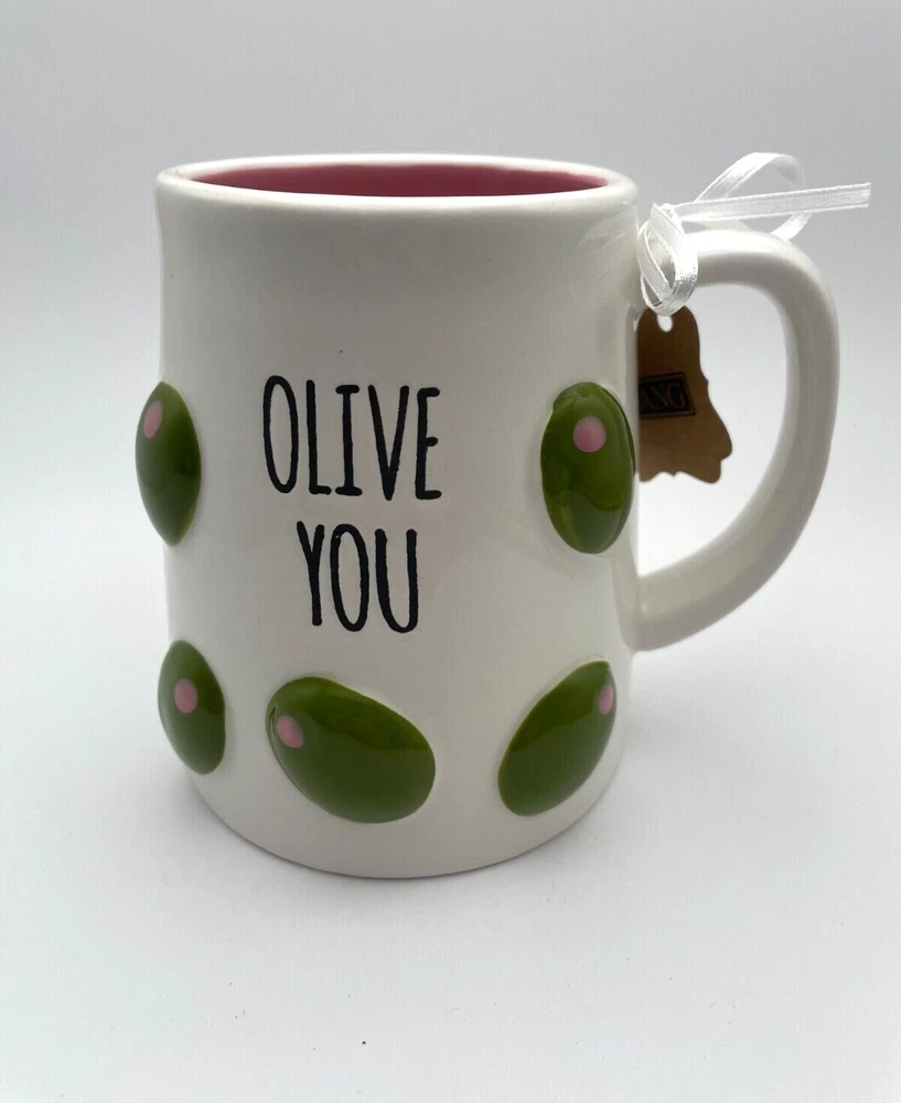 The Lang By Design Olive You Hand Painted Embossed 16oz Coffee Mug is a unique and stylish addition to any kitchen. This round ceramic mug features a novelty design with an olive pattern, hand painted in vibrant multicolor. With a contemporary style and a capacity of 16 fl oz, this microwave and dishwasher safe mug is perfect for all occasions.