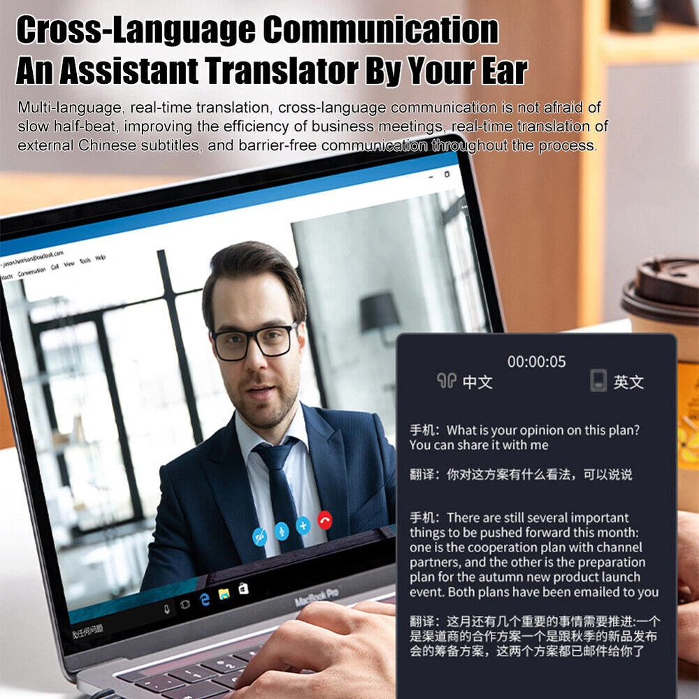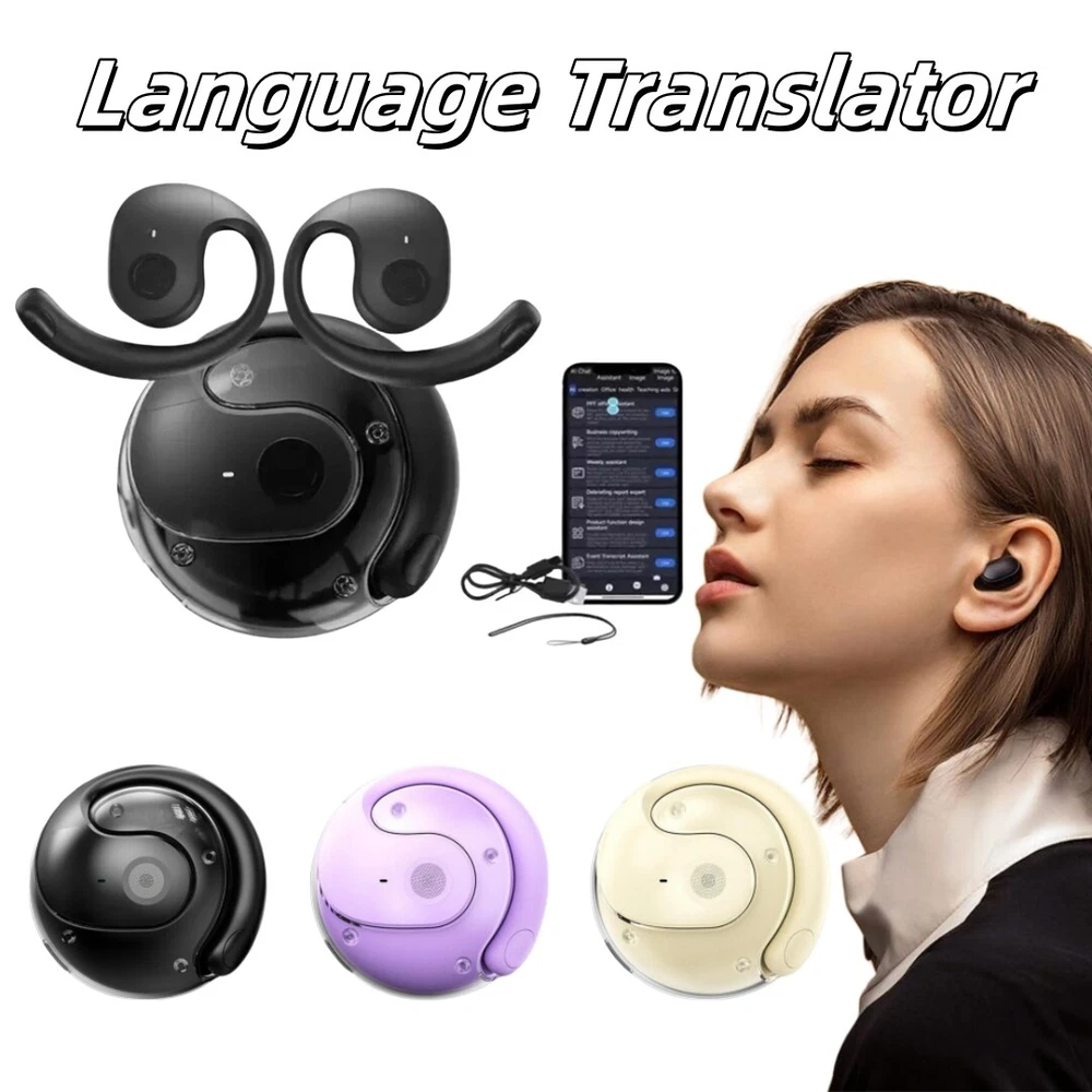 Product Description Feature: - Effortless Multilingual Communication:Break language barriers with these earbuds, supporting 70+ languages for smooth conversations anywhere. - Perfect for Travel & Work:Ideal for travelers and professionals, these earbuds ensure clear communication in any situation. - High-Accuracy Translations (98% Accuracy):Enjoy fast, accurate translations with features like voice recording, translation, and speech. - Smart AI Features:Built-in AI enhances translations and offers extra functions like AI chat for more versatile use. - Crystal-Clear Sound:Experience high-quality, clear audio during translations, calls, or gaming with no interference. Specification: Size: 50.00x44.00x24.00mm/1.97x1.73x0.94inch BT version: 5.3 Speaker specification: 13MM Earphone battery capacity: 50mAh Charging case battery capacity: 250mAh Single use time: about 4 hours Interface type: Type-C Waterproof and dustproof level: IPX4 Real-time translation: 70+ languages Package Included: 1 x Earphones 1 x Lanyard 1 x Wireless Charging Case 1 x Type-C Charing Cable 1 x User Manual