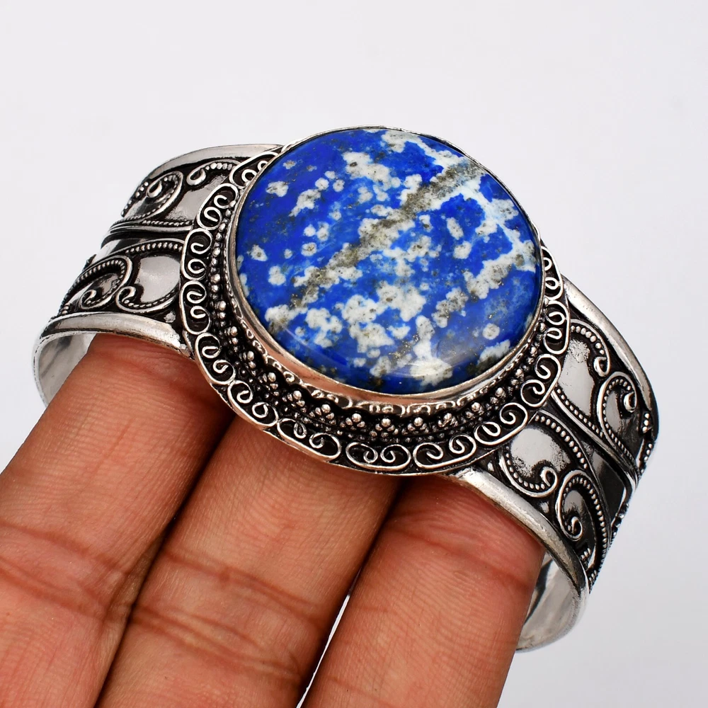 Lapis Lazuli Ethnic Gemstone Handmade Adjustable Bangle Jewelry CB-188