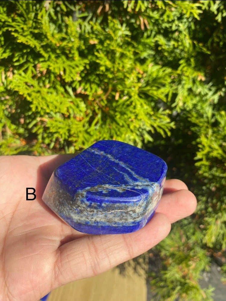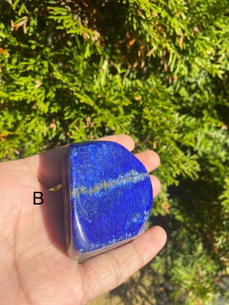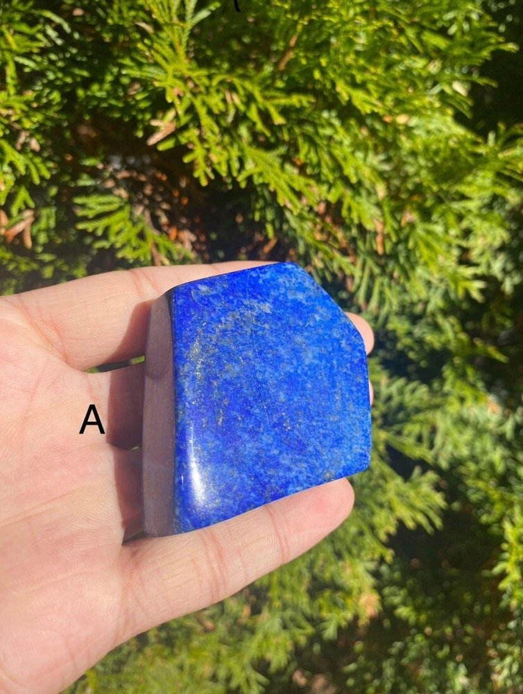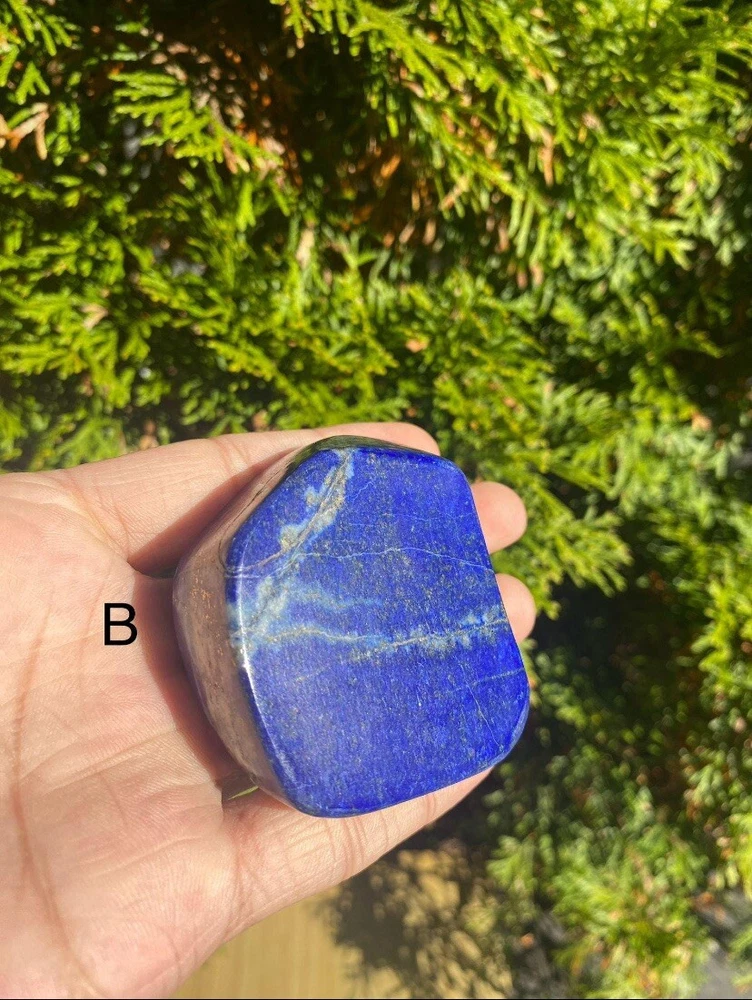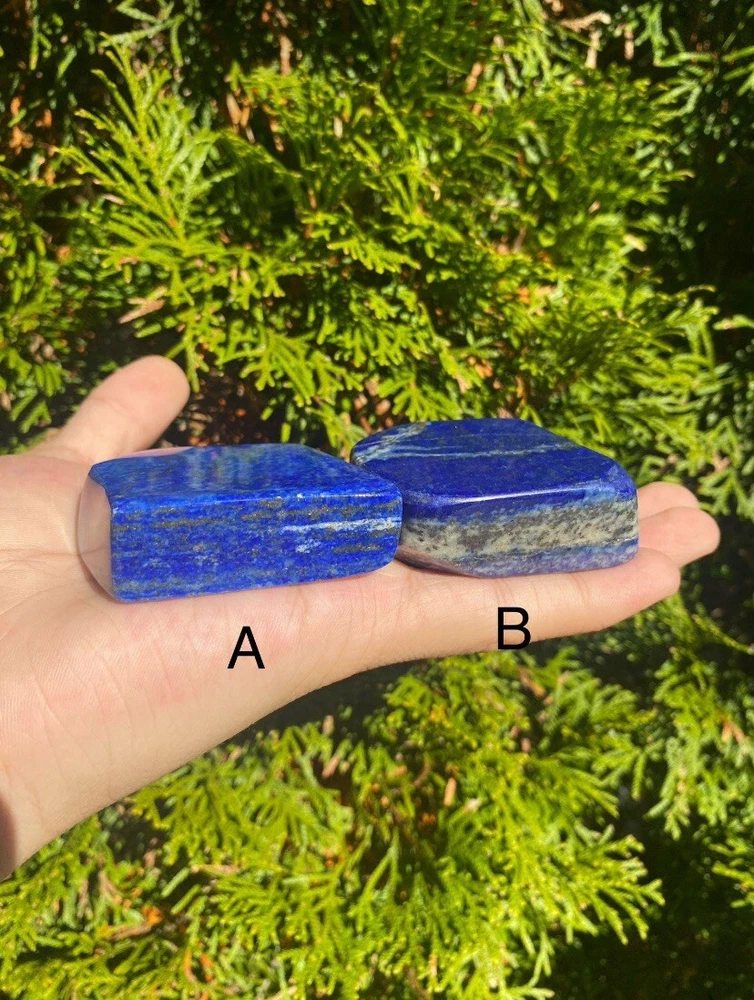 Lapis Lazuli Freeform from Afghanistan. • Material:~ Gemstone • Stone:~ Lapis Lazuli • Color:~ Blue • Shape:~ Freeform Items Weight: | A-- 126 Grams | B-- 172 Grams Used for: Home Decor, Office Decor & For Decoration These items are very rare to find because it is only found in Afghanistan. It is totally handmade. Each piece is a Natural and original Stone shaped into a Freeform. It will be used as a decor piece at home. Which will give a good impression to you and your guests. LAPIS LAZULI >> Is a deep blue mineral that is often used as a gemstone and as Jewelry. Lapis lazuli is a very rare and valuable gemstone. Lapis lazuli is found in Afghanistan, Pakistan, and the eastern part of the Himalayas. The lapis lazuli gem is often cut into small pieces and used to make jewelry, especially necklaces, Pendants and other decorative items. Lapis Lazuli is a stone of protection that can be worn to ward off mental attacks; it immediately relieves stress and promotes inner serenity. Lapis Lazuli strengthens the immune system, cleanses the blood, decreases blood pressure, and cools and soothes inflammatory areas. It reduces vertigo and sleeplessness, as well as depression. If you have any questions please feel free to contact us. Thank You