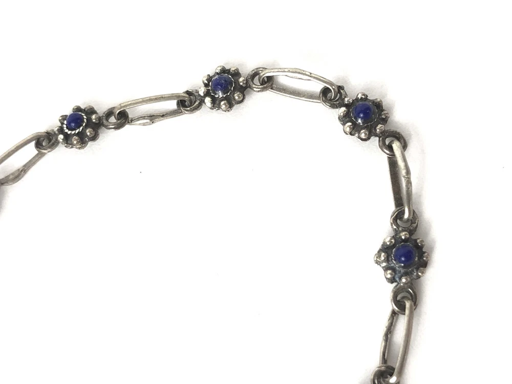 Lapis Lazuli Minimalist Link Bracelet Sterling Silver 925 Fine Jewelry 6.75" Type: Bracelet Stone: Lapis Lazuli Length: 6.75" Width: 4.2 mm Height: n/a Weight: 3.5 gr Clasp: Spring Ring Hallmark: 925 Condition: Scattered scratch and patina, could use a good polishing, stones are fine Comments: A very delicate bracelet, the stones are well matched in color Please see all photos for details
