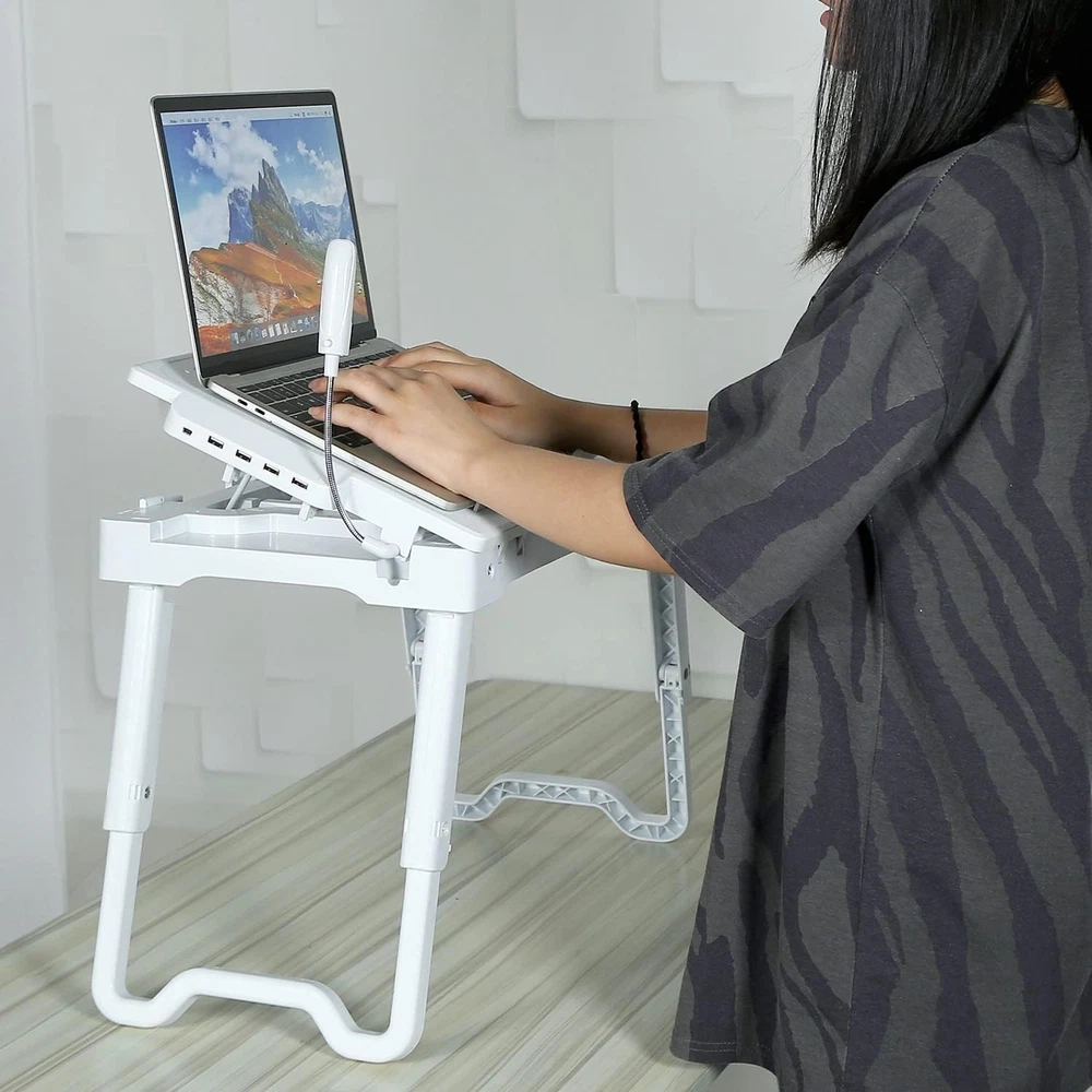 Store New Arrivals Add to Favorite View Feedback Contact Laptop Desk for Bed,Adjustable Laptop Stand Foldable Bed Table Portable Lap Desk Folding Notebook Stand Reading and Writing Tray with 4 USB Port and Cooling Fan for Bed Couch Sofa Floor (White) Description Item model number 11112 Style Portable,Adjustable,Simple Assembly Required No Color White Finish Type Unfinished Material ABS plastic Material Type ABS plastic Manufacturer Part Number 11112 Item Weight 5.19 pounds Age Range (Description) Adult Included Components fan, flexible light, mouse pad, 4 USB ports, pen storage Special Feature Adjustable,Flexible,Foldable,Portable Package Dimensions 22.5 x 12.7 x 2.7 inches 【Sturdy and Stable】Our laptop desk table is well made ABS plastic, nice and compact.You will love the sturdiness, stability and light weight of this laptop portable desk.It is perfect for home and traveling. 【All in One Laptop Desk】Laptop desk with fan keeps your computer cool. The flexible light is helpful if someone is sleeping while you are working in bed. You won't need the bedroom light on.Our laptop table feature mouse pad attacted, 4 USB ports and a pen storage. 【Adjustable Laptop Tray Table】It can hold your laptop high enough,It helps your neck muscles not become as tight due to looking down all the time. You can use it in bed, couch or with the legs tucked in the sides of a recliner or just at your regular desk to elevate it. 【Easy to use】Easy to set up and simple structure to fold and unfold. it is not only for doing your homework but also having breakfast as well, this table allows you do it comfortably on your bed,couch or sofa. 【Wide Application】Perfect portable laptop desk for working, reading, writing, watching movie on bed couch sofa. It can act as a laptop stand desk for office work, a breakfast tray for eating or a book table when study or drawing, etc. Product Description With this useful Laptop Desk that lets you doing your homework and having breakfast in bed more convenient and quickly. Features : Useful : Sturdy and your legs are easy to open and close when you surf the internet on the laptop or reading. Easy to use : It is easily folded flat and store in a corner or under your bed to save your room space. Lightweight and portable, it's very easy to take with you during travel. Multi- Purpose : You can use it for support when you use your electronic devices, eating, reading or writing, and it folds away nicely. Specification : Color: White, Grey, Blue Folded Size: 20.87”L x 11.81”W x 2.56”H Height with legs half unfolded: 10" Height with legs fully unfolded: 15" Weight: 2kg Package Included : 1PCS Laptop Table 1PCS USB Cable 1PCS User Manual Details of the Product : With large mouse Pad LED USB Lamp Adjustable Heights Application : With this Laptop Bed Tray Table that lets you do work from the comfort of your bed so easy and handy that lets you work and relax at the same time ! ABOUT US We offer the best prices around on high quality products. Our E-store includes media such as books, movies, music and games while offering electronics, toys, sporting apparel, clothing, tools, general home, garden items and more. SHIPPING We are always working hard to ensure your package arrives as soon as possible. Please understand that some factors like weather, high postal traffic, and the performance of shipping companies are outside of our control. We offer free shipping to the lower 48 states and ship within 2 business days of payment, usually sooner. We do not accept P.O. Boxes. Please provide a physical address. For shipping outside of the continental USA, we only use eBay's Global Shipping Program.The item is shipped to KY and then sent to the rest of the world. International customers are responsible for all duties and taxes. Continue to check out in order to calculate costs for shipping the item to your country. Messages regarding eBay's Global Shipping Program MUST be directed at eBay EXCLUSIVELY. RETURNS We offer a 30-Day Return Policy on items which you are not completely satisfied with. You have the option for a full-refund or an exchange of the item. No returns are available on items shipped outside of the USA. PAYMENT We accept PayPal. CONTACT US This page content is yet to come Please ad us to your favorite seller and visit again later Thank You CUSTOMER SATISFACTION We try our very best to make sure every customer is completely satisfied. If there's a problem, message us! We're happy to help. WE ACCEPT Copyright © 2021 AutoDS. | All Rights Reserved