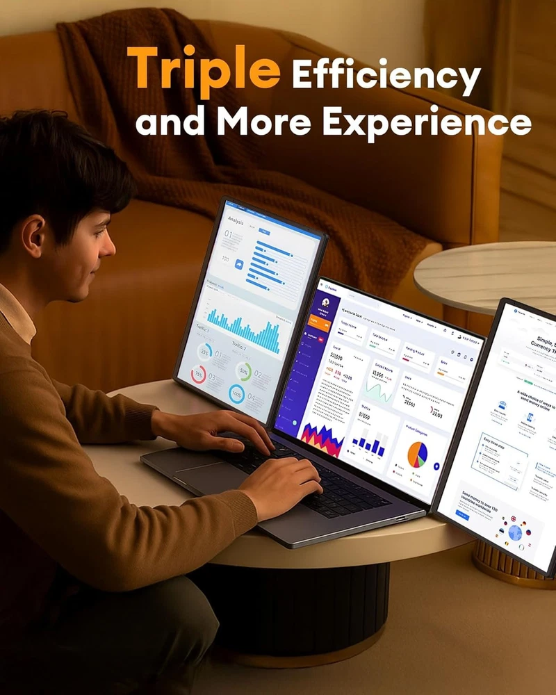 NGTeco Laptop Screen Extender, 16" FHD 1200P IPS Laptop Monitor Extender Triple Screen, Portable Monitor for Laptops 13-17" with Type-C/HDMI/USB-A Port Plug & Play for Wins/Mac/Chrome About this item [Expansive 16-Inch 1200P Display] Upgrade your workspace with a spacious 16-inch display in a 16:10 aspect ratio, offering 11% more vertical screen real estate than standard 15.6" monitors. With 1920×1200 (1200P) resolution and ultra-thin bezels, it delivers crisp visuals and an immersive edge-to-edge viewing experience—ideal for multitasking, content creation, and immersive media. [Dual Rotating Screens for Maximum Flexibility] Unlock over a dozen display configurations with dual screens that rotate 235° horizontally and 90° vertically. Whether you prefer a panoramic side-by-side setup, a stacked coding view, or a focused single-screen mode, the NGTeco S7 adapts to your workflow. Detachable screens provide added versatility when used independently. [Wide Laptop Compatibility, Secure Fit] Designed for laptops from 13" to 17.3", the extender fits any device with a screen width of up to 16.9 inches. The adjustable rear bracket ensures a secure and stable mount, making it compatible with a broad range of Windows and macOS devices for plug-and-play integration. [Smart Compatibility Notes] For MacBooks with M1/M2/M3 chips, dual-screen functionality may require an H5 hub (include) and driver installation. Common issues like “one screen working,” “no signal,” or “screen flickering” are usually compatibility-related and easily resolved. Reach out via NGTeco Support for prompt assistance—we’re here to ensure smooth setup and use. [Magnetic, Foldable & Home Office Ready] Built for convenience, the magnetic folding design allows quick setup and storage in the included carrying case. While the full system weighs 9.94 lbs, making it less travel-friendly, it's a solid choice for home offices or semi-permanent setups.