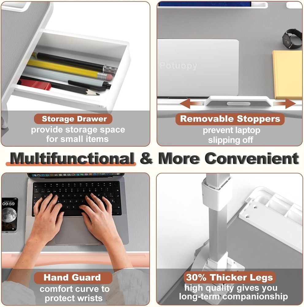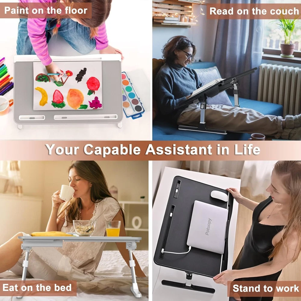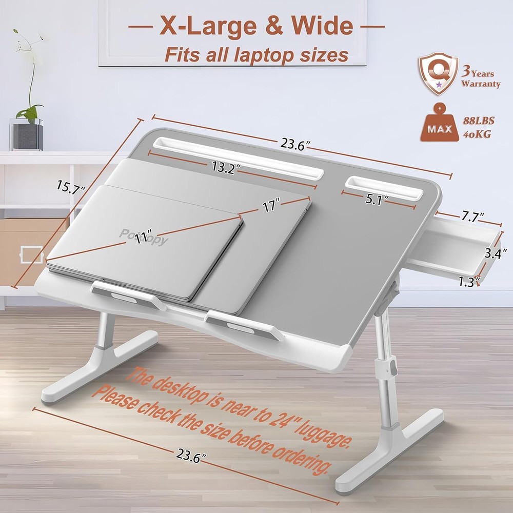 Laptop Stand for Bed, Potuopy Leather Adjustable Bed Desk Table Tray, X-Large