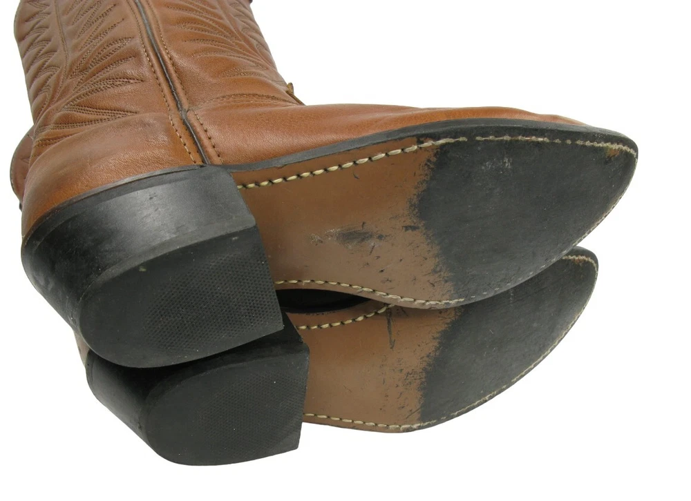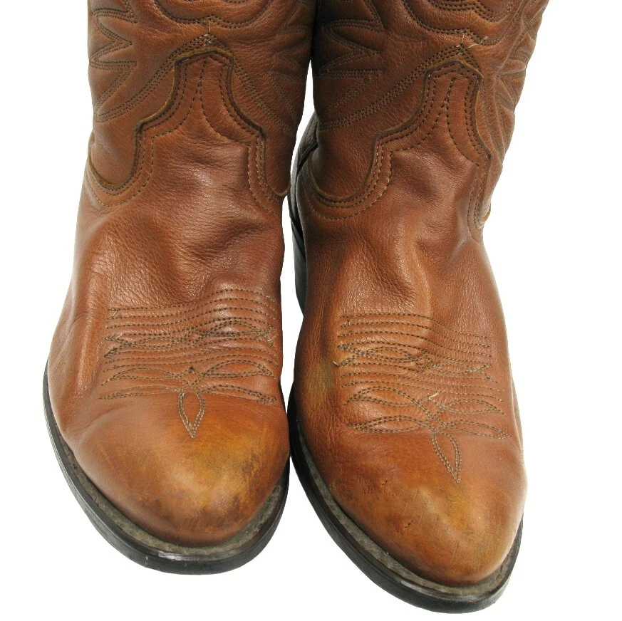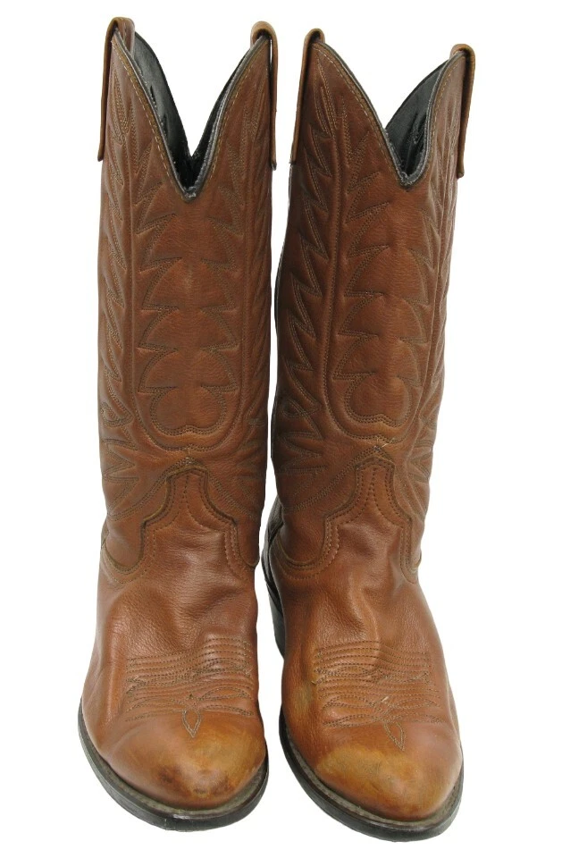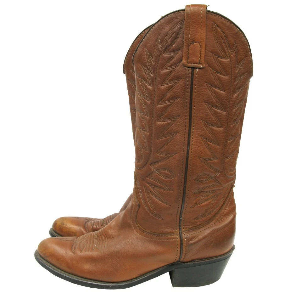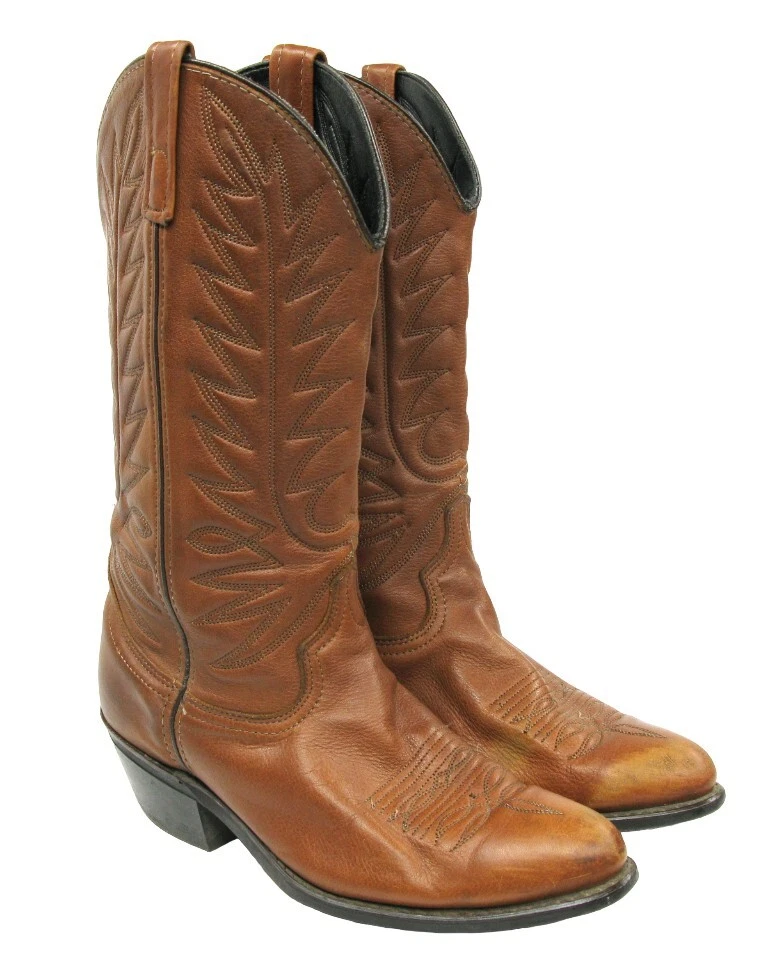 Color: Brown US Shoe Size: 7 Pattern: Western Upper Material: Leather Accents: Embroidered Closure: Pull On Features: Comfort Shoe Width: EW Type: Boot Style: Western Toe Shape: Almond Toe Department: Men Brand: Laredo