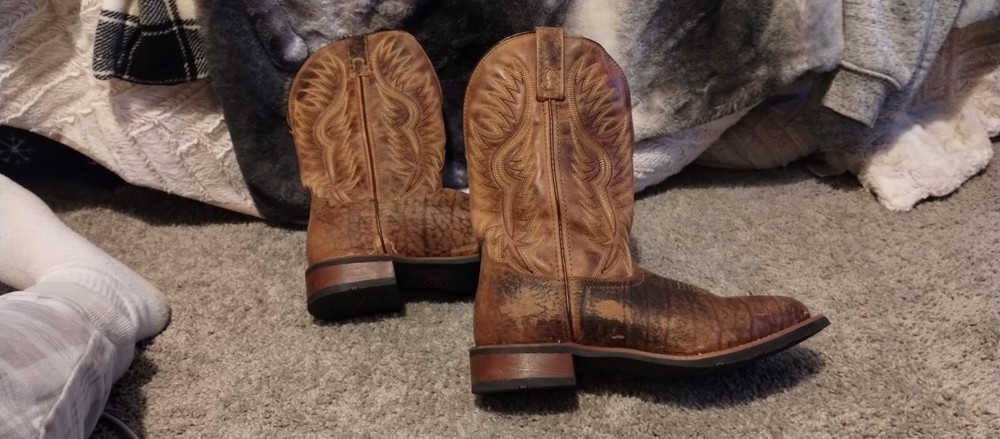 Step into the boots of a true Western enthusiast with these Laredo men's cowboy boots in size 9.5. Crafted with meticulous attention to detail, they feature a rich brown leather upper that combines durability with a classic aesthetic. The comfortable D-width design ensures a snug fit for all-day wear, whether you're out on the town or working the ranch.With a style that's as versatile as it is iconic, these boots embody the essence of the Cowboy theme. They're perfect for complementing any outfit, from casual denim to more formal attire. The robust construction and timeless design make them an essential addition to any discerning gentleman's wardrobe.
