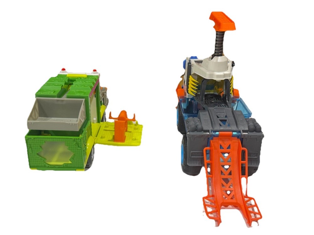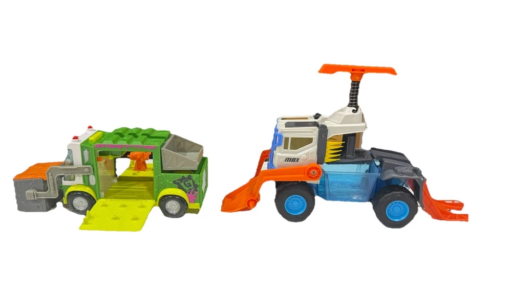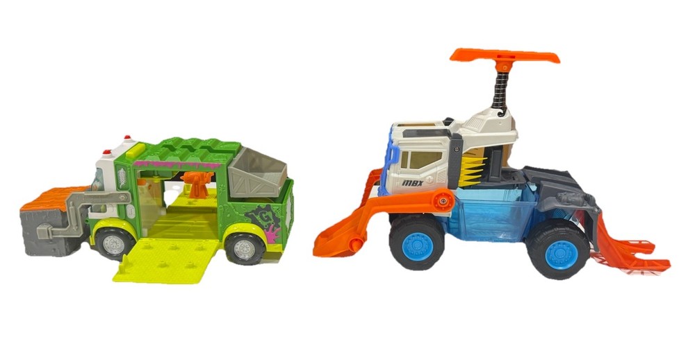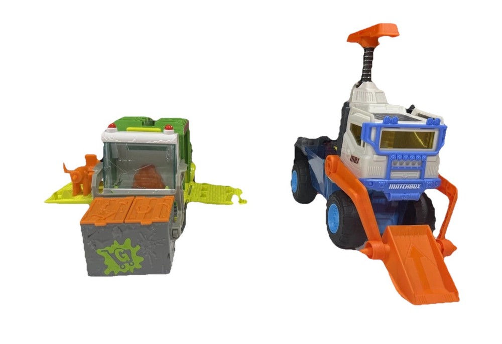🛻 Lot of 2 Toy Trucks – Grossery Gang Garbage Truck & Matchbox MBX Vehicle Transporter Description: Fun and colorful toy truck set featuring two action-packed vehicles! Includes: • The Grossery Gang Garbage Truck – Working front loader, removable dumpster, opening side doors, and fold-down ramp with built-in play accessories. Approx. 11” long x 5.5” tall. • Matchbox MBX Vehicle Transporter – Large blue and white transporter with orange loading ramps, spring-action lift, and upper platform. Approx. 12" long x 10” tall (extended). Condition: Pre-owned and in good overall condition. Light surface wear from play. No cracks or broken pieces. All moving parts function properly. Clean and ready for more fun! Features: • Durable plastic build for hours of imaginative play • Interactive ramps and lift mechanisms • Bright, bold colors kids love • Ideal for collectors, display, or playtime Approximate Measurements: • Garbage Truck: 11” L × 5.5” H × 4” W • Vehicle Transporter: 10” L × 10” H (extended) × 5” W • Combined weight: ~2.5 lbs Shipping: Ships fast and securely from California via USPS or UPS, depending on buyer location.