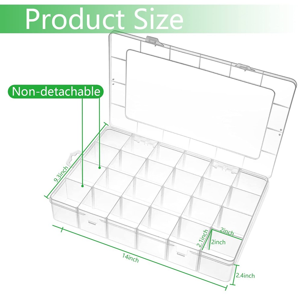 24 Grids Plastic Organizer Box Adjustable Dividers,Clear Storage Box for Jewelry, Art DIY Crafts,Washi Tapes,Beads and Small Parts-14*9.3*2.3 inches Material: the 24 grids plastic storage box is made of high-quality transparent PP plastic, you can easily identify the items inside. Size: plastic storage box inside diameter outside diameter: 14x9.3x2.4 inch, small lattice inside diameter: 2.1x2x2 inch. Applications: Ideal plastic storage box for washi tape, fishing tackle, ribbon, sewing art, beads, DIY art craft and so on. Features: The removable dividers inside the box can be adjusted to your favorite size. Easy to Carry: The plastic storage box can facilitate users to storage and carry small parts when they go on business trips or travel.