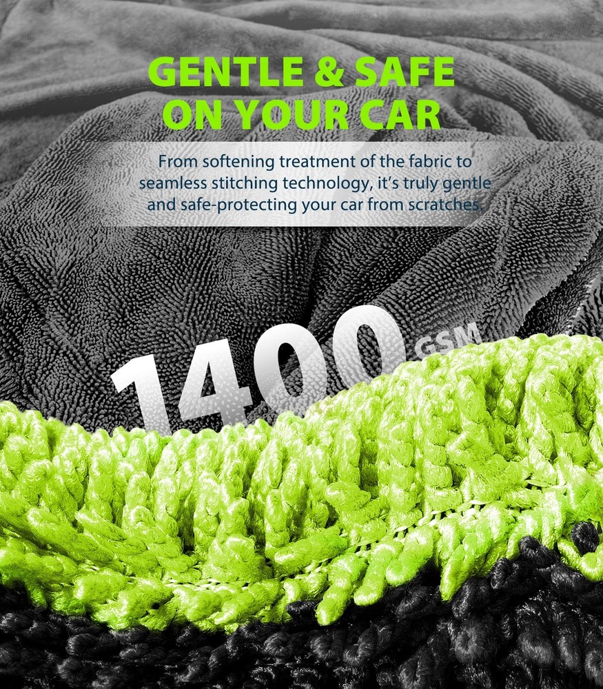 Streak-Free Drying 48” Oversized Excellence for Whole SUV: Boasting a 48x24-inch size—larger than the standard 35x24-inch towels on the market—our microfiber towel offers superior coverage and drying efficiency. Easily dry a full-size SUV without the need for wringing, making your cleaning routine faster and more effective Twisting Yarn Absorption Technology: Harness the power of 1400GSM (grams per square meter) ultra-fine microfiber with our innovative twisting yarn structure. Capable of absorbing up to 1 gallon of water, this towel guarantees a streak-free, spotless finish, leaving your car’s paint gleaming like new Gentle and Scratch-Free Design: Designed with a soft, seamless edge and advanced smoothing treatment, this towel is ideal for all car paints, glass, and TPU wraps. Its ultra-soft texture ensures a scratch-free clean, protecting your vehicle’s finish every time Efficient Drying and Hassle-Free Maintenance: The oversized dimensions enhance drying efficiency, especially for multi-person use. After use, machine wash with water and opt for low-temperature tumble drying or air drying to retain peak absorbency. Perfect for both personal and professional cleaning needs Exceptional Durability for Long-Term Use: Proven through rigorous testing, drying towels exhibit outstanding water absorption performance with minimal wear over time. Built to last, they’re an essential cleaning companion for car enthusiasts, professionals, and households alike