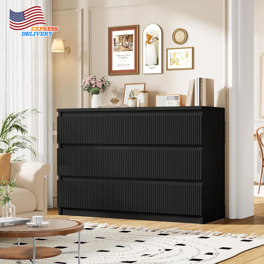 Store New Arrivals Add to Favorite View Feedback Contact Six Drawer Dresser Large Double Wooden Dresser Chest w/Deep Drawers for Bedroom Description Item model number farmhouse dresser Room Type Living Room, Bedroom Assembly Required Yes Mounting Type Floor Mount Color Black Material Engineered Wood, Metal Finish Type Polished Country of Origin China Item Weight 92 pounds Model Name farmhouse dresser Number of Drawers 6 Item Weight 92 Pounds Size 15.7"D x 47.3"W x 31.6"H (6 Drawers) Special Feature Scratch Resistant Product Dimensions 15.7"D x 47.3"W x 31.6"H Material Wood Room Bedroom MPN Does not apply Mounting Free Standing Six Drawer Dresser Large Double Wooden Dresser Chest w/Deep Drawers for Bedroom Modern Aesthetic Appeal: The six drawer dresser features a modern design with wave - like fluted panels, adding a touch of sophistication to your space. The clean lines and handleless design create a sleek look that complements any home decor. Whether placed in the bedroom, hallway, or living room, it serves as both a functional storage unit and a decorative piece, enhancing the overall aesthetic of the room. This six drawer dresser is a perfect blend of style and practicality. Superior Quality Materials: Constructed from high - quality MDF wood and equipped with sturdy metal slides, this dresser is built to last. The thickened dresser top is scratch - resistant, waterproof, and easy to maintain, ensuring long - term use. The reinforced bottom provides stable support, and the strong load capacity can handle heavy items. The high - quality metal slide rails ensure smooth and quiet operation of the drawers, making it a reliable choice for your storage needs in the six drawer dressers for bedroom. Ample Storage Space: Measuring 47.3" L X 31.6" H X 15.7" W, this double dresser offers 6 spacious smooth - glide drawers. Ideal for organizing clothes, shoes, socks, and other personal items. The large dresser chest top provides additional space for placing lamps, photo frames, or plants, helping you keep your space neat and organized. Say goodbye to clutter with this well - designed six drawer dresser for bedroom. Versatile Placement Options: This black dresser is extremely versatile and can be used in multiple rooms. It can function as a bedroom storage cabinet, an entryway dresser for storing daily essentials, or a TV dresser in the living room. Suitable for various home styles, it can be easily integrated into different areas such as the bedroom, living room, closets, hallway, and entryway. The fluted dresser with drawers is a great addition to any home layout. Simple Assembly Process: We've designed this modern dresser with easy assembly in mind. It comes with detailed installation instructions, parts, and accessories are numbered for easy identification, and the precise holes make the installation process quick and accurate. Spend less time assembling and more time enjoying your new six drawer dresser. If you have any questions, our customer service team is available around the clock to assist you. Product Description ABOUT US We offer the best prices around on high quality products. Our E-store includes media such as books, movies, music and games while offering electronics, toys, sporting apparel, clothing, tools, general home, garden items and more. SHIPPING We are always working hard to ensure your package arrives as soon as possible. Please understand that some factors like weather, high postal traffic, and the performance of shipping companies are outside of our control. We offer free shipping to the lower 48 states and ship within 2 business days of payment, usually sooner. We do not accept P.O. Boxes. Please provide a physical address. For shipping outside of the continental USA, we only use eBay's Global Shipping Program.The item is shipped to KY and then sent to the rest of the world. International customers are responsible for all duties and taxes. Continue to check out in order to calculate costs for shipping the item to your country. Messages regarding eBay's Global Shipping Program MUST be directed at eBay EXCLUSIVELY. RETURNS We offer a 30-Day Return Policy on items which you are not completely satisfied with. You have the option for a full-refund or an exchange of the item. No returns are available on items shipped outside of the USA. PAYMENT We accept PayPal. CONTACT US This page content is yet to come Please ad us to your favorite seller and visit again later Thank You CUSTOMER SATISFACTION We try our very best to make sure every customer is completely satisfied. If there's a problem, message us! We're happy to help. WE ACCEPT Copyright © 2021 AutoDS. | All Rights Reserved