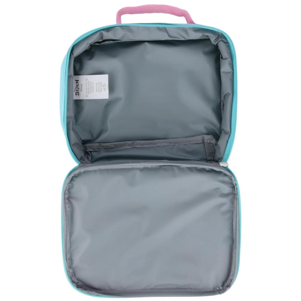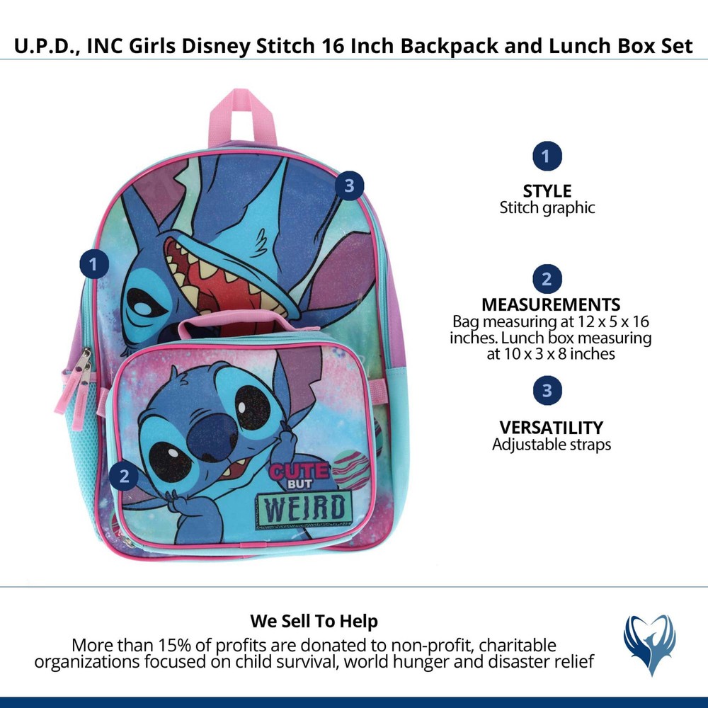 Measuring at 12 x 5 x 16 inches Detachable lunch box Lunch box measuring at 10 x 3 x 8 inches Mesh side pocket Adjustable straps Made of Synthetic