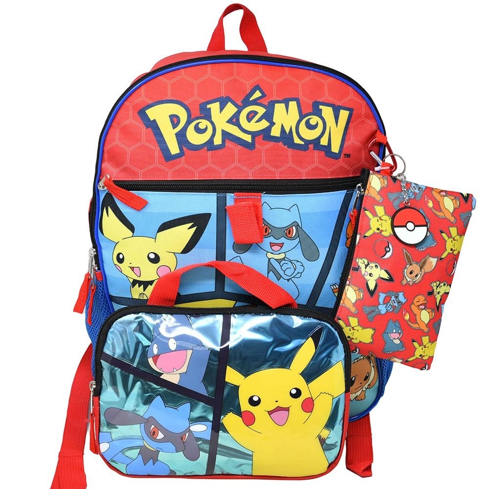 $ 14.23Large Backpack Pokemon Team 5pcs Utility Pencil Case Lunch Bag Key Chain 16"