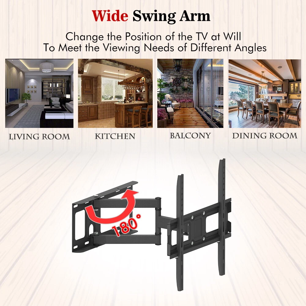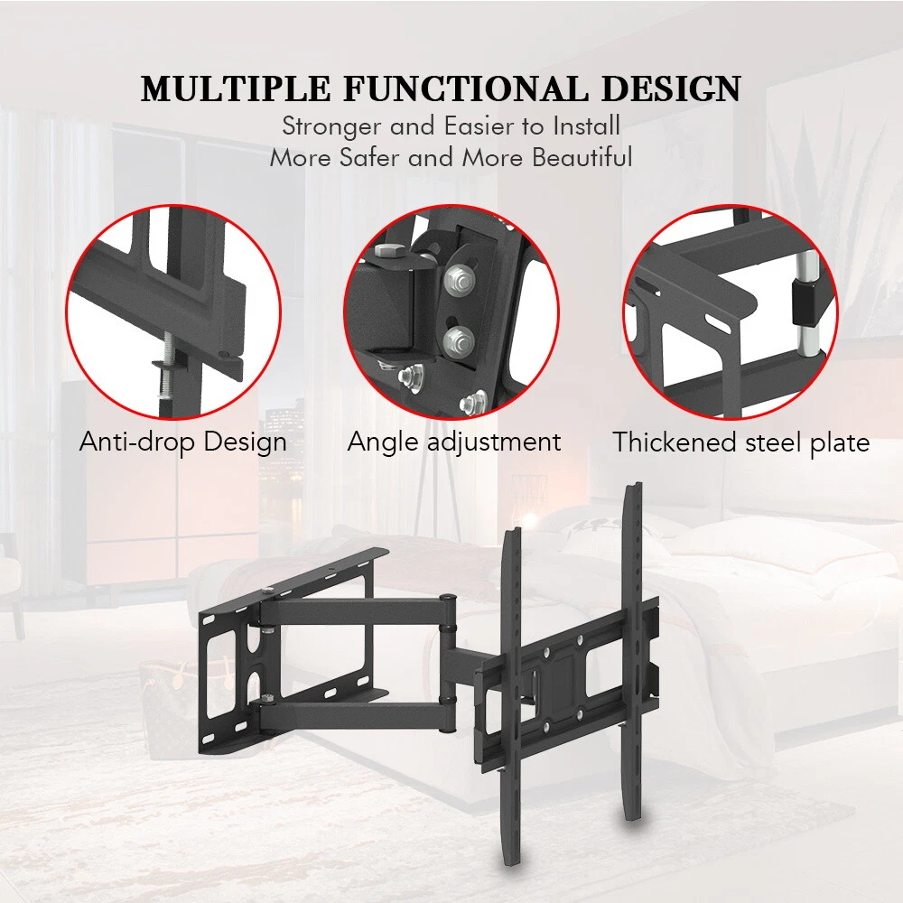 Introductions: Are you still having trouble with putting your TV? This LEADZM 32-60" Wall Mount Bracket TV Mount TMDD-102 with Spirit Level can avoid the trouble of how to put you TV. This TV stand can save space of your Living room and provide a large space for you and your families. You can Watch TV when you do yoga or play games with your children. The maximum weight of 35kg makes the TV stand more stable and reliable. We hope our products can bring you more perfect watching experience. Features: 1. Save space 2. The maximum weight of 35kg makes the TV stand more stable and reliable 3. Light weight and easy installation 4. High-quality steel is not easy to rust and deform 5. Suitable for study, meeting room, classroom and so on Specifications: 1. Brand: LEADZM 2. Model: Tmdd-102 3. Type: Mount 4. Supportable Display Size: 32"-60" 5. Tilt Range: -10~ 10° 6. Max VESA Mounting Pattern: 400 x 400 Mm 7. Distance Between TV And Wall: 82mm-430mm 8. Load Capacity: 77Lb / 35kg 9. Material: Cold Rolled Plate 10. Surface: High Temperature Paint Piano 11. Color: Black Package Includes: 1x TV Wall Mount 1x Standard Hardware Kit (The Screw Kit Is Standard. Don't Make Sure Fit All The TV Models. Please Buy One Kit If Don't Fit) 1x User Manual