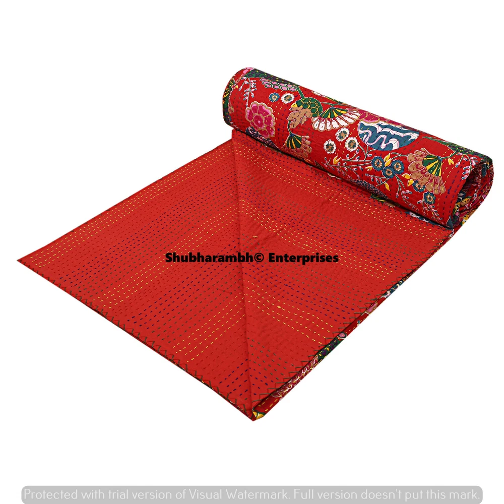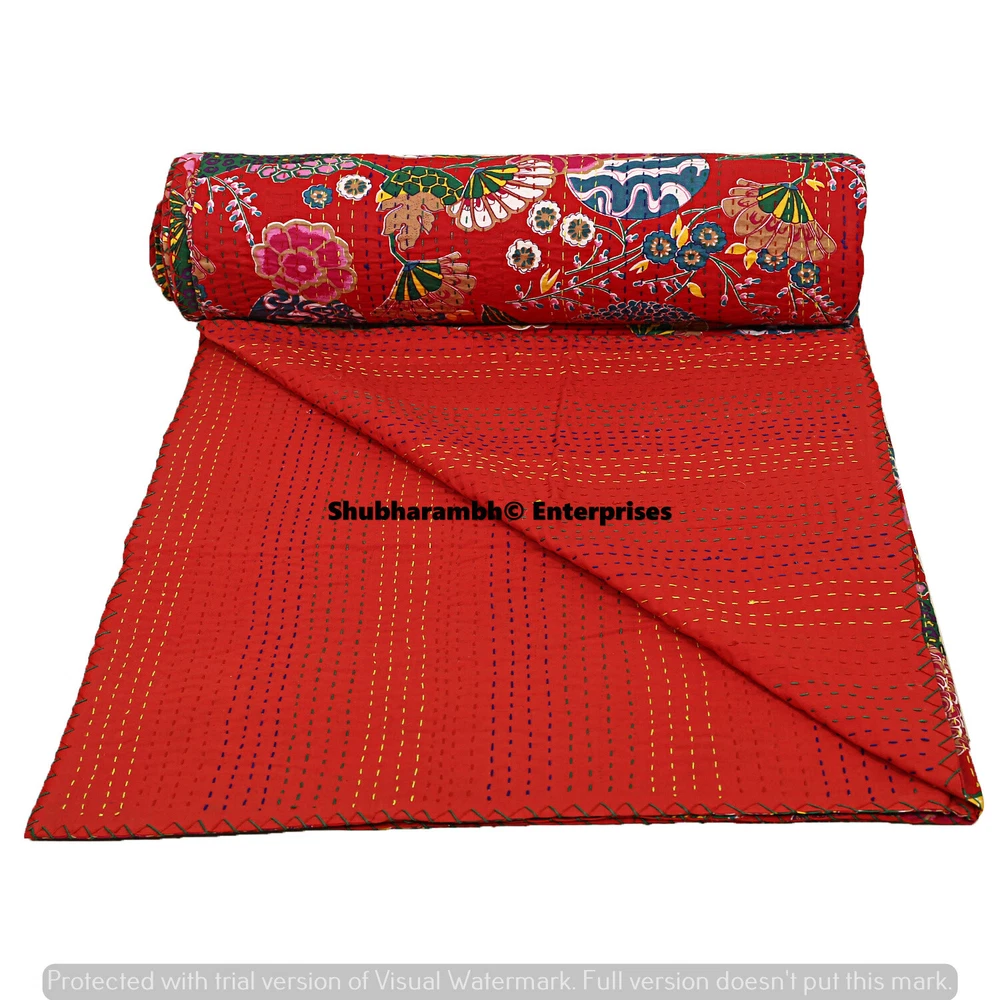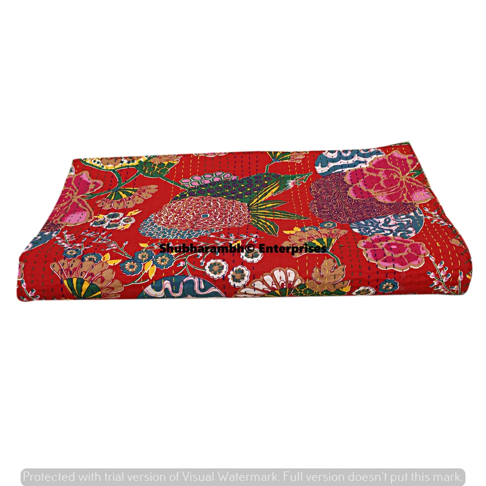 Large Bedroom Throw Kantha Floral Coverlets Indian Queen Throw Bedspread Bedding