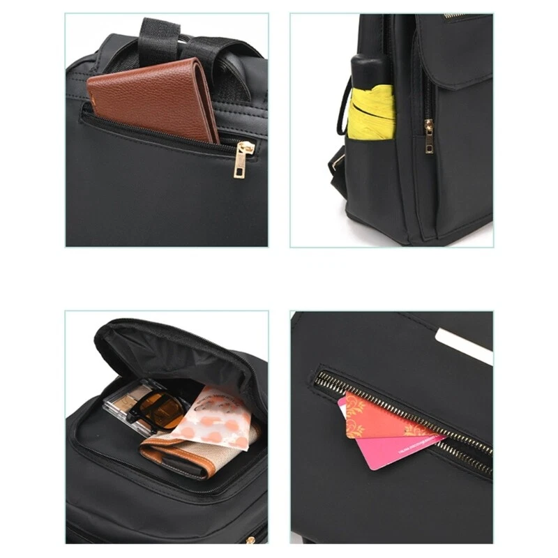 Features: Brand new and high quality This fashion backpack for women is made of nylon leather material, lightweight, durable for everyday using. Large capacity. Main compartment is enough large for Pad, books, magazines and clothes. Outer with a zipper front pocket, a backside zipper pocket and 2 side pockets. Anti-theft back zipper , a nice feature for safety and security. Adjustable dual shoulder straps and a backside strap provide comfortable feeling. Great laptop backpack for women, girls and students, which will be excellent present for yourself, your family, girlfriends. Perfect gift for anniversary, birthday, and other important dates. Specifications: Gender: Women Fashion Closure type: Zipper Material: Nylon Color: Black Size:app. 27x11x30cm /10.62x4.33x11.81in Quantity: 1pc Package Includes: 1pc Backpack note: 1cm=10mm=0.39inch No retail package. Please allow 1-2cm error due to manual measurement. make sure you do not mind before you bid. Due to the difference between different monitors, the picture may not reflect the actual color of the item.