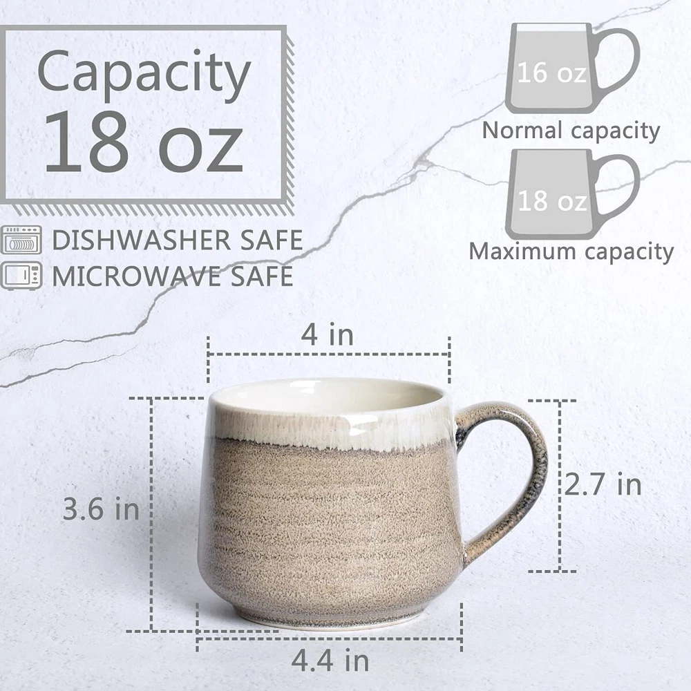 Large Ceramic Wide Coffee Latte Mug Set of 2, 18 Oz, Big Stoneware Tea Cup for O This mug has a large capacity(18 oz), larger than most of mugs, which will definitely meet your needs for office and home. STURDY & DURABLE: Designed with strong ceramic construction, made of lead-free, cadmium-free, high quality ceramic. Suitable for hot and cold drinks. Dishwasher and microwave safe. EASY TO HOLD: Question mark-shaped handle can keep it from rotating when you try to hold the mug, which helps you enjoy your tea/coffee comfortably. SIMPLE & CLASSIC: So simple but classic design. A choice of four stylish colors makes a great gift for the Holidays, birthdays and special occasions. If you have any problem with our mug after received, just contact us! We promise that we will make every effort to solve it. We care deeply for our customers and make you our top priority! Thank you! Shipping We offer FREE shipping on all orders! We ship within Three business days of payment, usually sooner. We use a selection of shipping services such as UPS, FedEx, USPS etc. We only ship to the lower 48 states, no APO/FPO addresses or PO Boxes allowed. Local pickups and combined shipping options are not provided at this time. Return You can return a product for up to 30 days from the date you purchased it. Any product you return must be in the same condition you received it and in the original packaging. Please keep the receipt. Payment We accept payment by any of the following methods: PayPal Please pay as soon as possible after winning an auction, as that will allow us to post your item to you sooner! Feedback Customer satisfaction is very important to us. If you have any problem with your order, please contact us and we will do our best to make you satisfied. Contact Us If you have any queries, please contact us via ebay. We usually respond within 24 hours on weekdays. Please visit our eBay store to check out other items for sale! Thank you for shopping at our store.