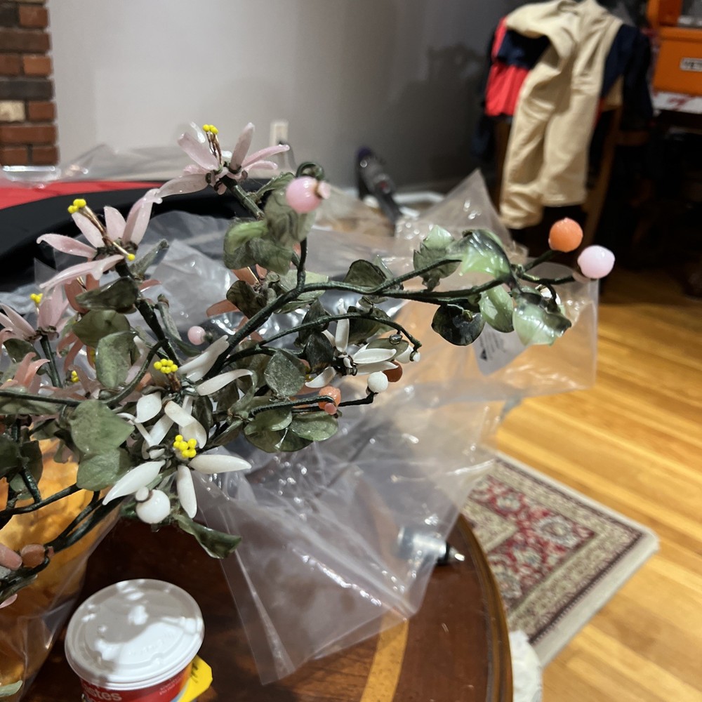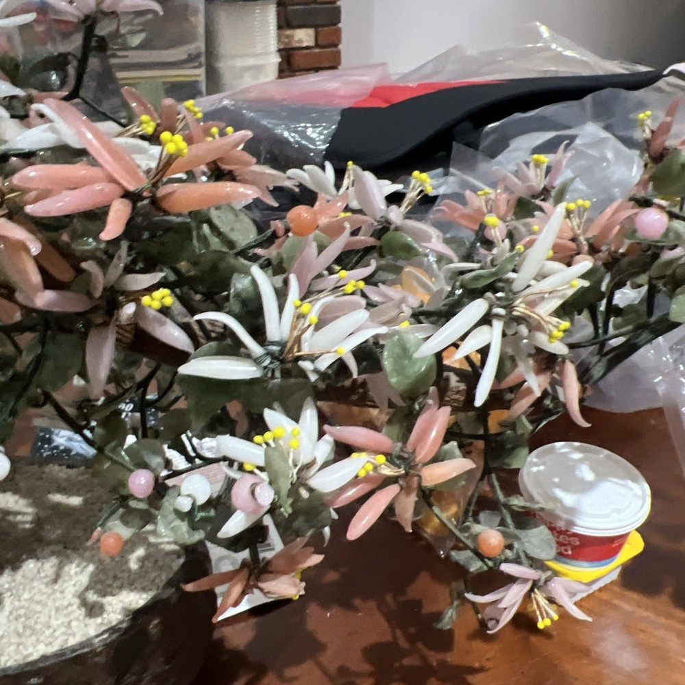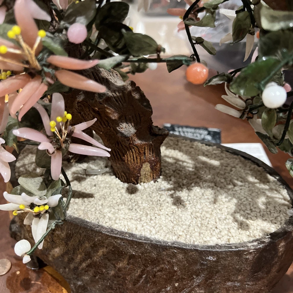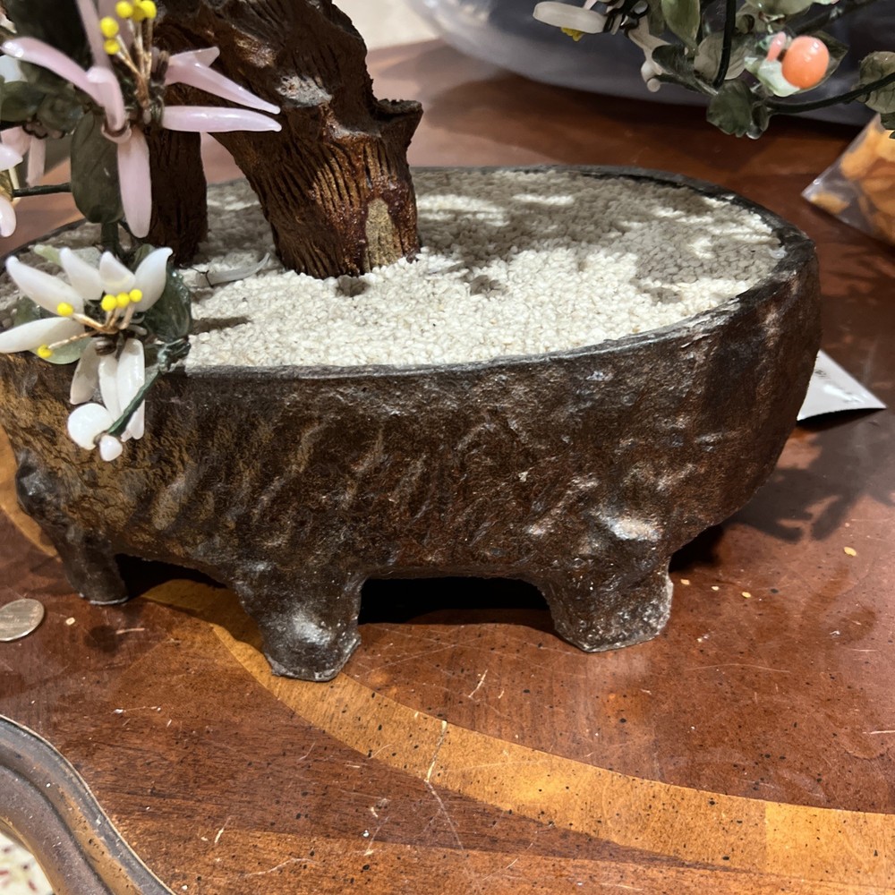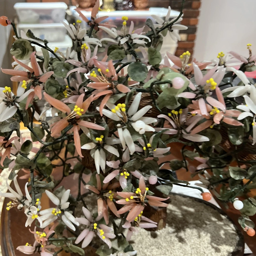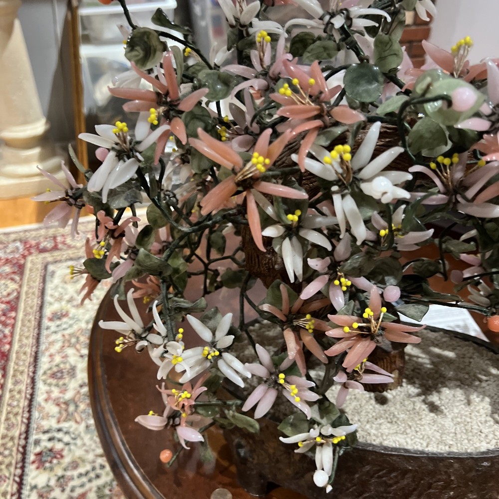 Jade in glass Chinese handmade bonsai tree extra large about 12 inches in height and 2 1/2 feet in length. Actual picture of item and photos in good condition.