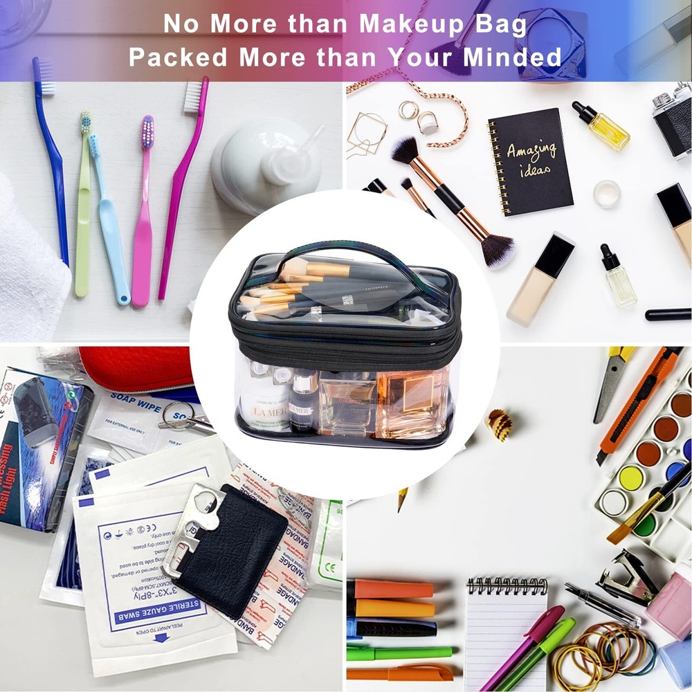 Lermende Large Clear Makeup Bag, 2 Layer Portable Makeup Organizer Bag Water-Resistant PVC Travel Makeup Pouch Laser Cosmetic Bag For Girl and Women (upblack) 💅Double Layer Design& Large Capacity: The clear travel cosmetic bags features double layers, can keep your makeup brushes and beauty tools from your liquid bottle skincare product as well as seperate wet product from Dry.Help you keep reusable clear toiletry bags tidy at all times. 💅Transparent & Water-Resistant:Large makeup bag clear made of Premium transparent PVC material, the transparent appearance makes it easier for you to find what you need and save you time,no more hassle on airport checking ; High water-resistant function can effectively prevent liquid leaking out and staining your clothes . It is great clear travel cosmetic bags for your travel. 💅Thick Portable Handle Design : With Thickness laser leather Cosmetic bag , you are freely to carry on your travel organizers anytime to anywhere you want . 💅Well Design Cosmetic Bag: Compared with ordinary clear makeup toiletry bags , This large travel pouch adopt 3 Reinforced skeletons which More stressed and storage more ; the 2-way alloy double slider design is smoother and more convenient to take. 💅Fashion Laser Elements: Integrated with laser illusion elements, which is brilliant and dazzling under sunshine , Your every second has a surprise with colorful spectrum refraction . Bring your family and your toiletry bag to tavel along ! SHIPPING Domestic Buyers - We have confidence in our products, but if you are not fully satisfied please contact us within 30 days of purchase and you will get full refund. - We ship within 3 business days of payment, usually sooner - We offer FREE shipping on all orders! - We only ship to the lower 48 states, no APO/FPO addresses or PO Boxes allowed International buyers – please note: Import duties, taxes, and charges aren't included in the item price or postage cost. These charges are the buyer's responsibility. - Please check with your country's customs office to determine what these additional costs will be prior to bidding or buying. * Order Cancellation Policy ** You can return a product for up to 30 days from the date you purchased it. 1. The seller reserves the right to cancel the special case only due to eBay cancellation fee. 2. The decision of seller is the final. 3. The seller will respond to the cancellation request within 2 business days. Please wait for the result of cancellation. 4. In case the cancellation is not completed by some reasons, the buyer can follow the options below to get the refund. 4.1 The buyer can reject the item when it arrives. 4.2 The buyer can send the item back to the seller within 30 days If the buyer receives item (USA Shipment ONLY). The seller will provide the FREE return label to the buyer when the buyer opens " Return Item" case on eBay by using the reason as "Change my mind" ONLY. 5. When buyer has placed the order. The order will be processed and completed by automatic warehouse system within 5 minutes. In case that buyer sends the cancellation request after 5 minutes of placing the order, the request will be rejected. **Sending direct message to cancel the order is not allowed for every case.* Return Policy For the return case - If buyer would like to return the items for refund or replacement, please CONTACT SELLER to receive the free return label from seller. The refund or replacement will be processed with the tracking number of return label which is provided by seller only. The other ways of return which are not approved by seller will not be processed for the refund or replacement.