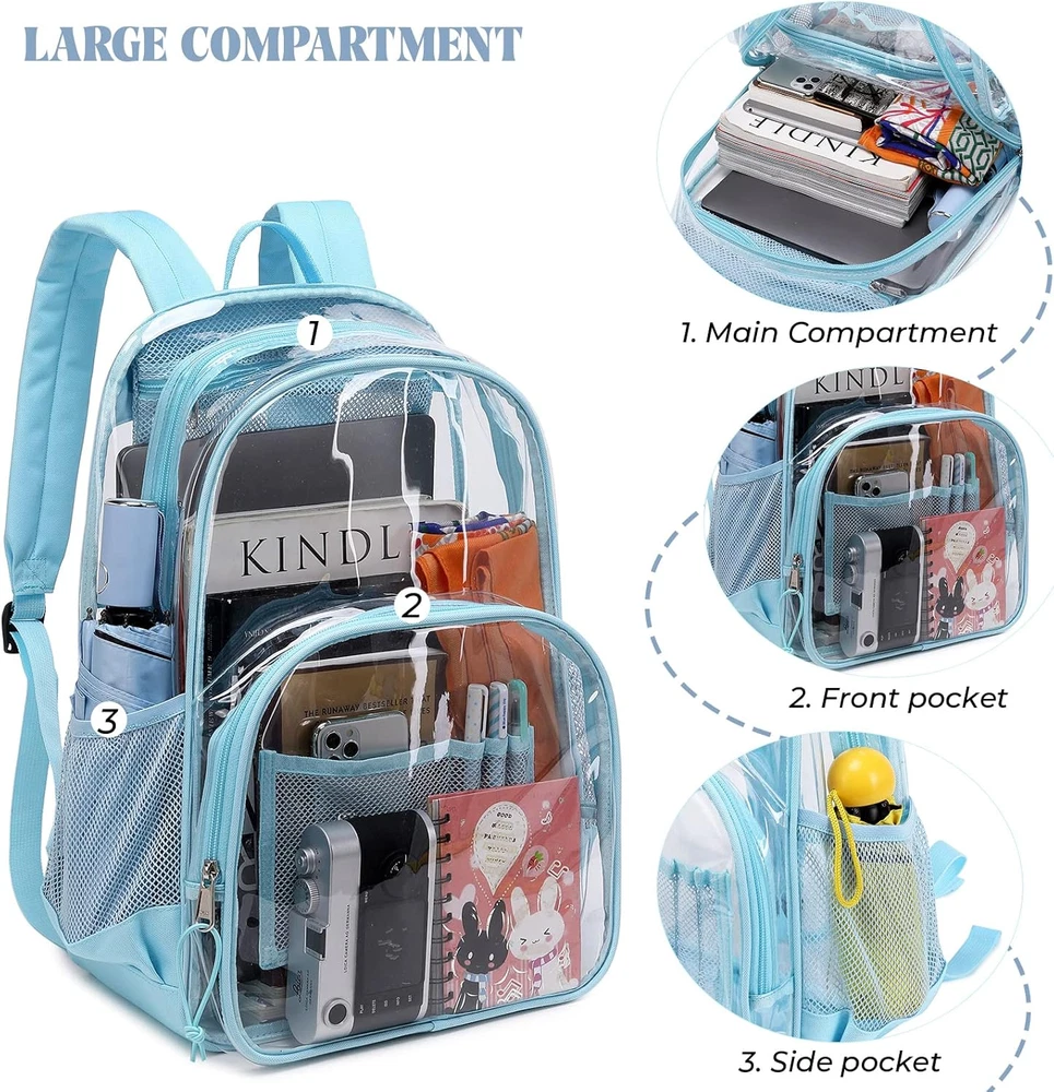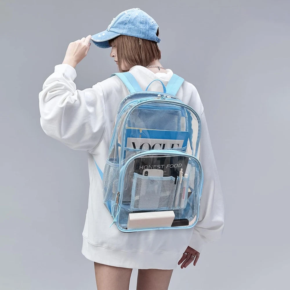 Large Clear PVC School Backpack See through Bookbag Heavy Duty Laptop Bag for Me