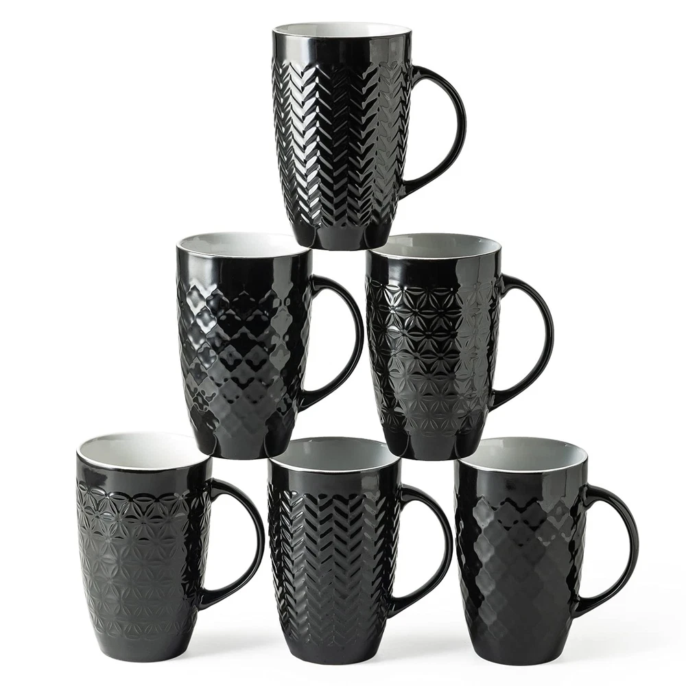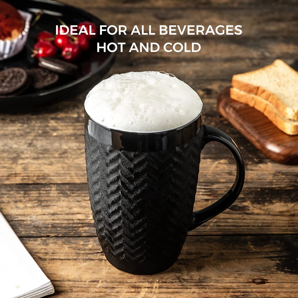 HEALTHY&EXCELLENT VALUE : Our coffee mugs are crafted from high-quality ceramic and finished with natural glaze, making them lead and cadmium-free. This means you can enjoy your beverages and food without any concerns about harmful substances leaching into them. Our degradable clay is fired at 2200℉ for 8 hours, resulting in mugs that are durable, and chip-resistant, ensuring long-lasting use. You can rest easy knowing that you are using a safe and reliable product 22OZ &VERSATILE: These large capacity coffee mug is perfect for daily use at home or in the office. With its big size, you can enjoy a normal cup of beverage without worrying about spills. This mug is not just for coffee - it's also great for tea, soup, beer, cocoa, and more. LARGE OPEN HANDLE AND STYLISH DESIGN: These coffee mugs features a large open handle that provides a comfortable and secure grip. The handle remains cool even after microwaving, and the beverages stay warm. The smooth rim of the mug ensures a comfortable drinking experience. Designed by professional artists, these mugs with geometric patterns not only look fantastic on your table but also add a touch of style to your kitchen. EASY TO CLEAN AND DISHWASHER, MICROWAVE SAFE: The shiny inside glaze of our ceramic mug prevents coffee stains from sticking, making it easy to clean. Plus, this mug is safe for use in the dishwasher, microwave, and freezer, making it convenient for everyday use. GREAT GIFT OPTION: Our mugs come in a well-packaged box, making them a great gift for birthdays, holidays, or anniversaries. They're not only perfect for daily use but also make an ideal present for your loved ones.