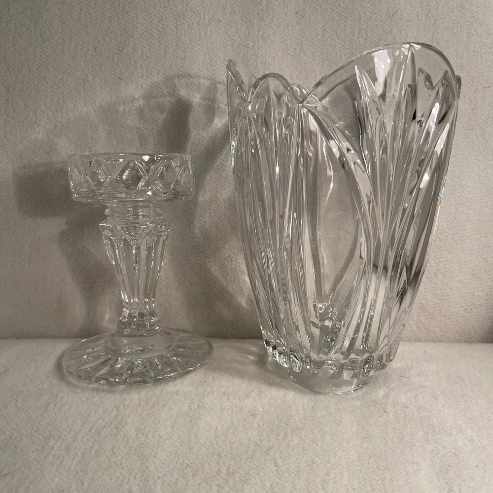 Large Crystal Hurricane Candle Holder 2 Pieces 12.5” Tall & Heavy