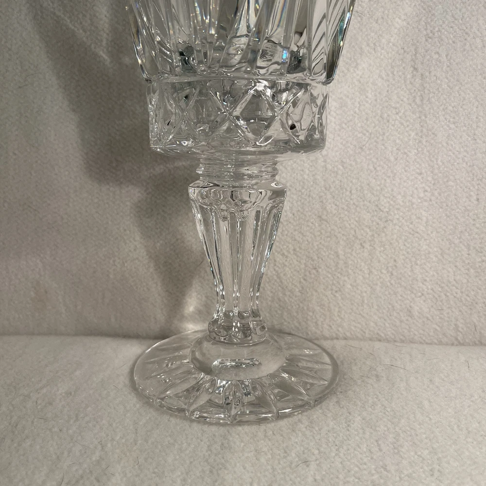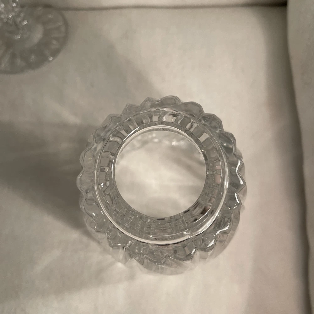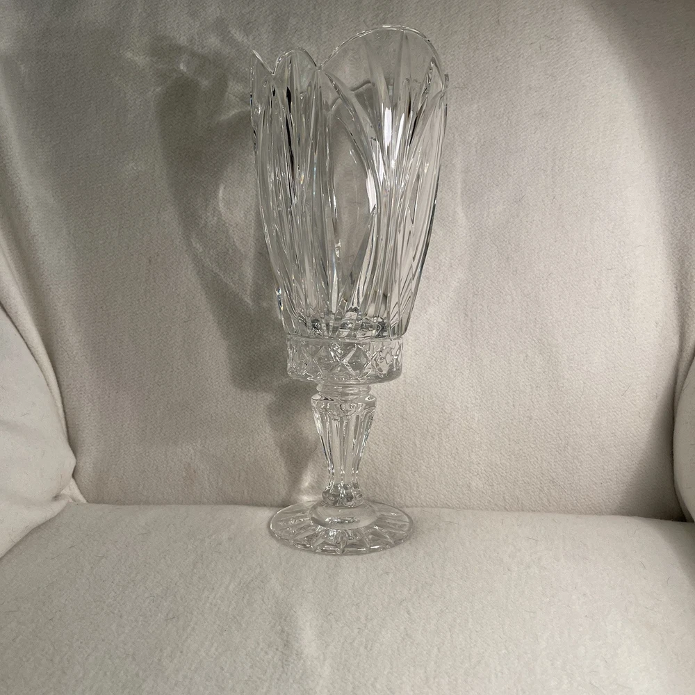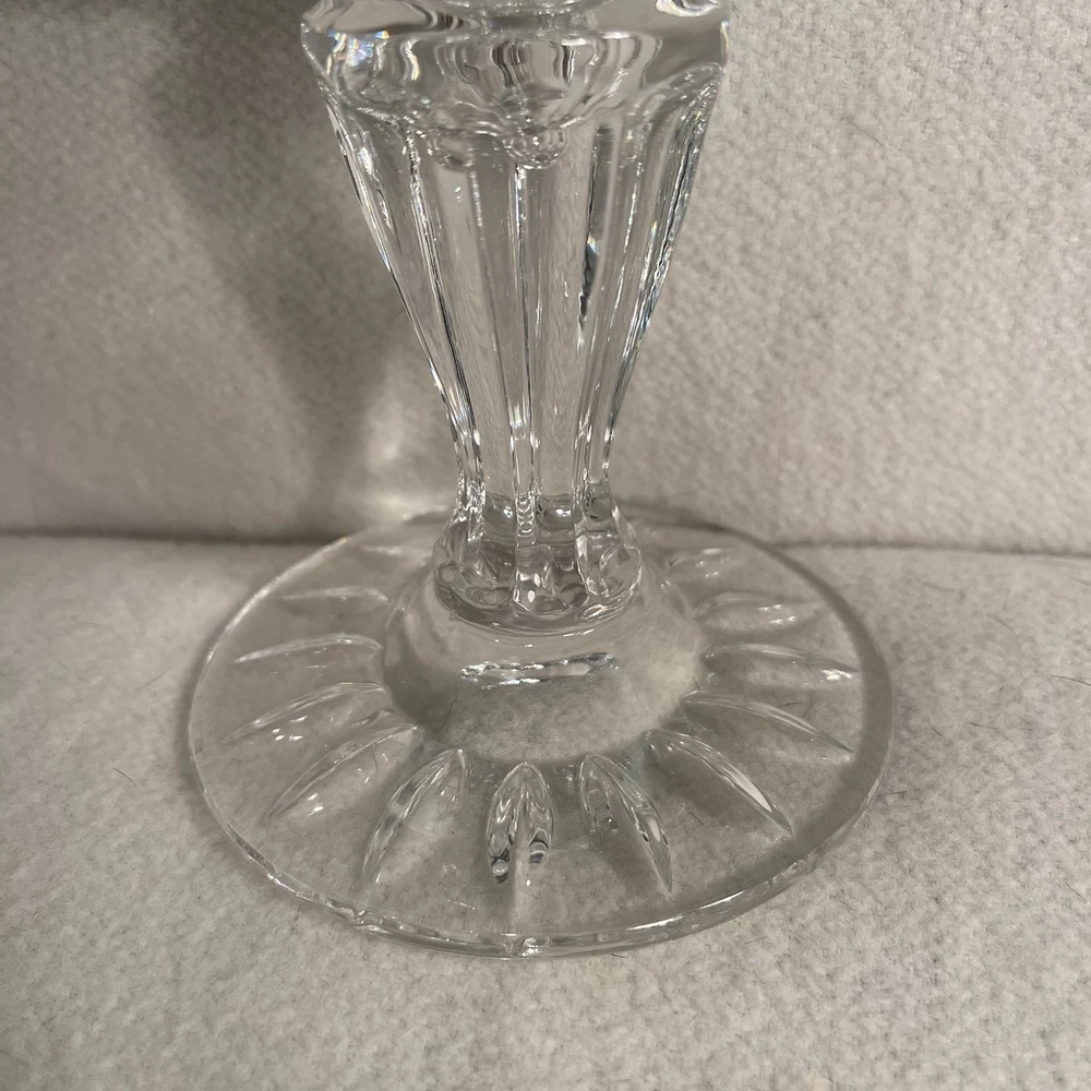 Suitable For: Mini Candle, Tapers Features: Decorative Item Height: 12.5” Color: Clear Shape: Round Material: Crystal Item Weight: 4.2 Lbs Occasion: All Occasions Subject: Design Original/Reproduction: Original Item Width: Top 5” Bottom 4” Brand: Unbranded Production Technique: Fused Glass Style: Traditional Time Period Manufactured: 1980-1989 Type: Hurricane Candle Holder Size: Large Pattern: All-Over