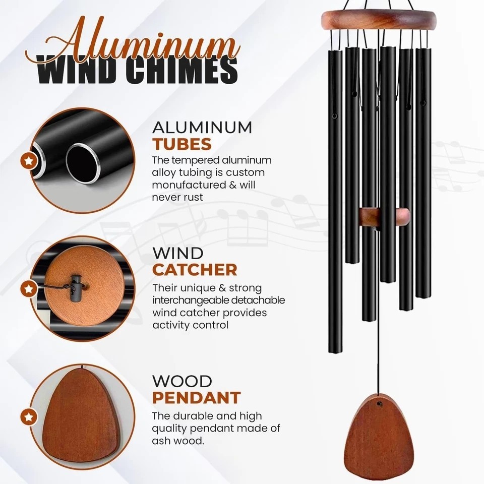Large Deep Resonance Serenity Wind Chimes Metal Deep Tone Outdoor Home Decor US Package Include: 1 Pcs Wind Chime Description: Features & details ♪ The aluminium wind chime is the most creative gift, it is suitable for various representative dates, such as Mother's Day, anniversary, birthday, party, Thanksgiving, Christmas, New Year, housewarming, etc. ♪ When the breeze blows the windcatcher and drives the aluminium tube to resonate, you will hear the deep tone. ♪ For you who are lounging on the patio, the breeze blowing the wind chimes is a pleasure, the atmosphere is intoxicating and it can relax your body and mind. ♪ Expertly tuned aluminum tubes produce a calming, resonant tone that brings peace and comfort. More than a decorative piece, this memorial wind chime offers healing through sound and helps preserve cherished memories. ♪ It is perfect for lawn, garden, patio, backyard, front yard, hall, hallway, balcony, roof, living room, bedroom, dining room decoration. Specification: Color:Black/Copper Note: -Pictures are taken in kind, due to the different colors of display, there may be deviations. The actual kind shall prevail. Guarantee • Fast & Free Shipping on ALL Orders We believe that you should enjoy the benefit of FREE Shipping on all of your orders within the all Continental States. That's why no matter what you buy, we will ship it for FREE, so the price you see is exactly what you pay. No hidden fees or shipping charges. • Most Items Delivered in 2-6 Business Days When you're buying from us, you deserve fast and reliable service. That's why we have a "Same Business Day" processing in place and wide range of shipping options to choose from in order to deliver your package as soon as possible. *2-6 business days’ time-frame is NOT GUARANTEED and was statistically calculated based on all previous orders. • ALL Orders Placed On Business Days Before 4 PM EST Will Be Shipped Same Day Why wait a day or more for your order to ship? All orders placed before 4 pm EST, Monday to Friday, ship the SAME day. Orders placed on Friday after 4 pm EST, Saturday and Sunday will be shipped the next Monday (if business day). We are closed on all Federal Holidays. • 30 Days Money Back Guaranteed! We will gladly accept your return within 30 days of the original purchase. Please, see below for our full Returns Policy. Shipping • Most orders arrive at your door in 2-6 Business Days FOR FREE! • Place your order before 4 pm EST and it will be shipped the same day, Monday to Friday, excluding major holidays. • We will ship your order to your PayPal Verified address provided. • Please verify your address and make sure that it is your current address before making your payment. Any address change requests after your payment CANNOT be guaranteed. • We do not include invoice with our shipments. Feedback • Positive feedback is automatically done once your order is shipped. • We appreciate all our customers to post a Positive Feedback and "Five-Star" scores. • If for any reason you are not satisfied with your purchase. Please contact us via eBay Message and We will do our best to satisfy you! Payment & Cancellation • Instant PayPal payment is required. • We also accepts Visa, MasterCard, Discover, and American Express through PayPal guest checkout. • Sales tax is charged by eBay based on your shipping address. • To uphold a shipping speed, your order will be processed almost immediately. If you change your mind after your payment is confirmed, we will do our best to stop the order, however, we CANNOT guarantee the cancellation. Return • We will gladly accept your return within 30-Days of the original purchase. • Our return process is simple and fast: 1. We will pay for the return shipping label if you received a broken/defective item(s) or the item(s) doesn't match our description. As soon as we receive the item(s) back we will process a refund for the item(s)which was/were returned. 2. You will be required to pay for the return shipping label if you changed your mind or no longer need the item(s). As soon as we receive the item(s) back we will process a refund for the item(s) which was/were returned. • If we'll receive a package back because of the incorrect address, the refund will be processed excluding our shipping cost. Contact Us • Send us a message on eBay and we will answer within 24h on business days. On Dec 31, 2025 at 10:30:57 PST, seller added the following information: