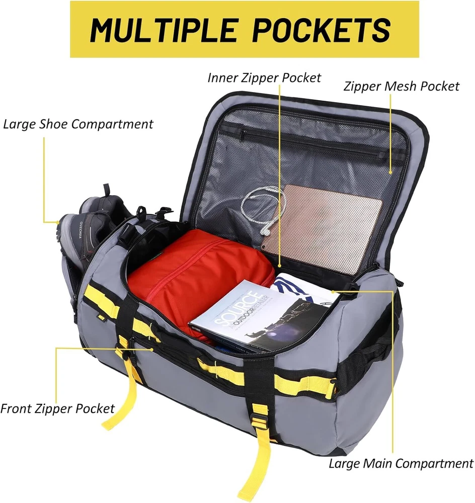 About this item Duffel Bag or Backpack? ---- You can own them all at once! MIER sports duffel designed with adjustable backpack straps which are easily attached or detached, adjustable sternum straps ensure suitable place to wear, also has an adjustable/removable shoulder strap and 4 sides soft haul handle for multiple carrying ways Multifunctional Pockets ---- D-zip opening with a weather-resistant zipper flap included 1 big mesh pocket with 1 key loop inside, 1 inner zipper pocket and 1 open pocket; Outside: 1 zipper pocket on the front, 1 big side zipper compartment included a shoes compartment with mesh ventilated and 1 pocket for toiletries and towels; Water-resistant ID pocket on top Water Repellent Duffel ---- Built from heavy-duty water resistant tarpaulin and reinforced double layered tear-resistant floor panel, designed for harsh environments and features huge capacity to hold your workout gear or your trip stuffs. Best for hiking, camping, climbing, gym sports, car trip, traveling or other outdoor adventures Functional Construction ---- Daisy chain loops and "D" rings on strap for extra attachments; Innovative compression strap system helps compact large loads; Smooth "MIER" brand zipper and strong buckles, box-stitched on every stress points, being more durable and tough, make MIER bag ready for a lifetime of adventures Different Capacity ---- 45L: Airline carry-on size. Great size for a gym/fitness/sports bag or for shorter weekend trips. 60L: Designs for 5-7 days trips/camping/adventure. 90L:Designs for travel over a week/camping/adventure for more bulky sports gear Product Dimensions 13 x 23.2 x 13 inches Item Weight 4.2 pounds Department unisex-adult Country of Origin China Item model number 10110033-6081-S01