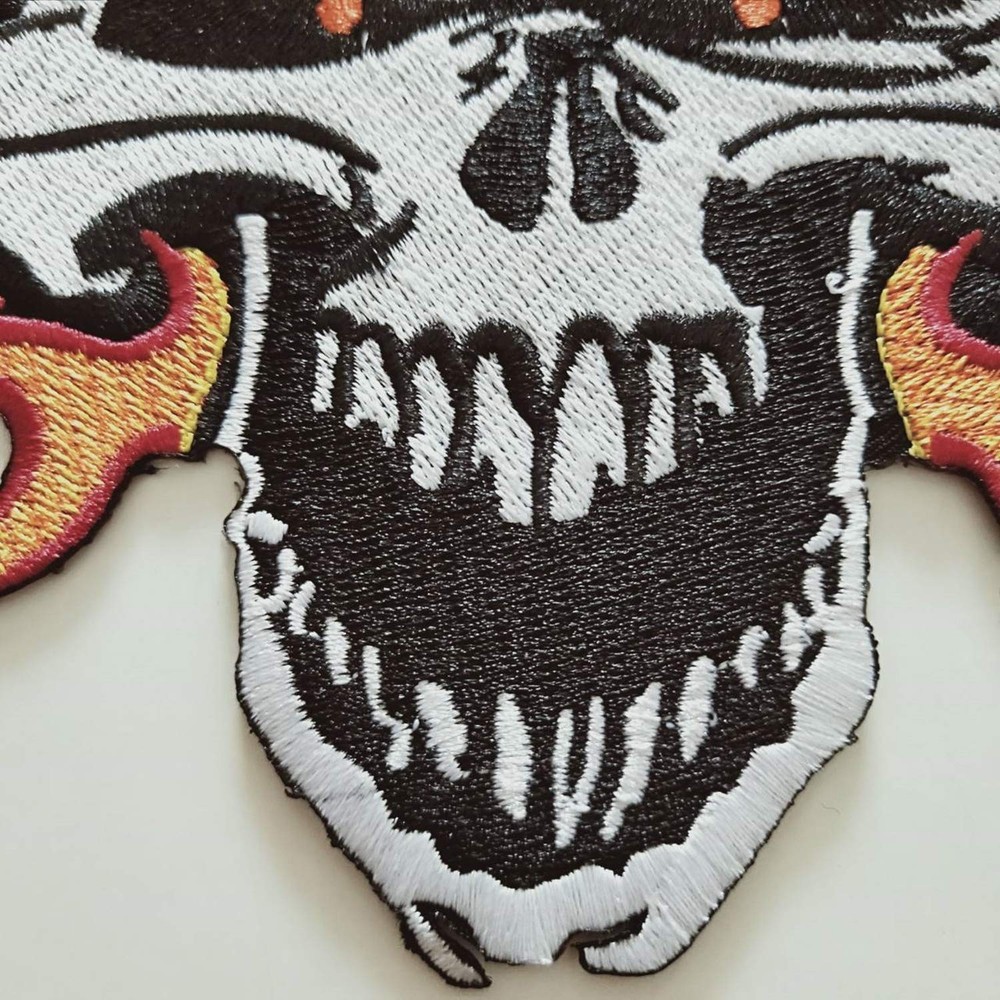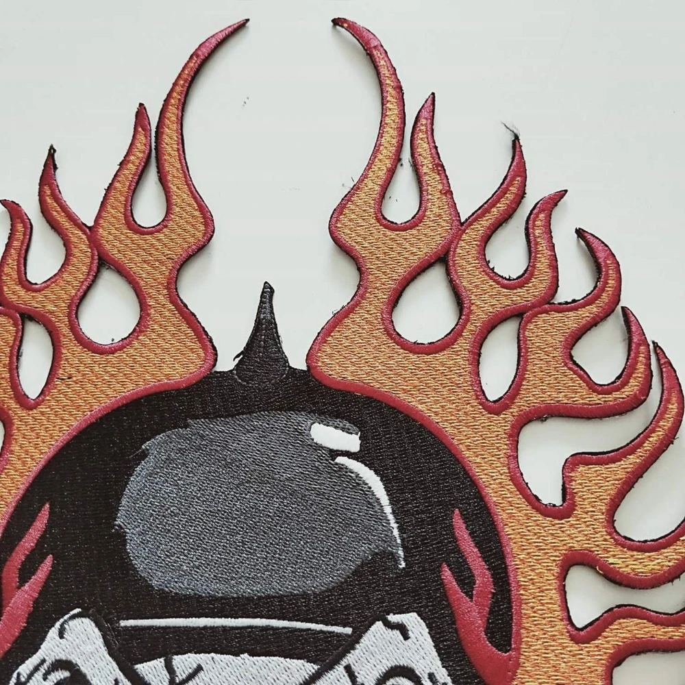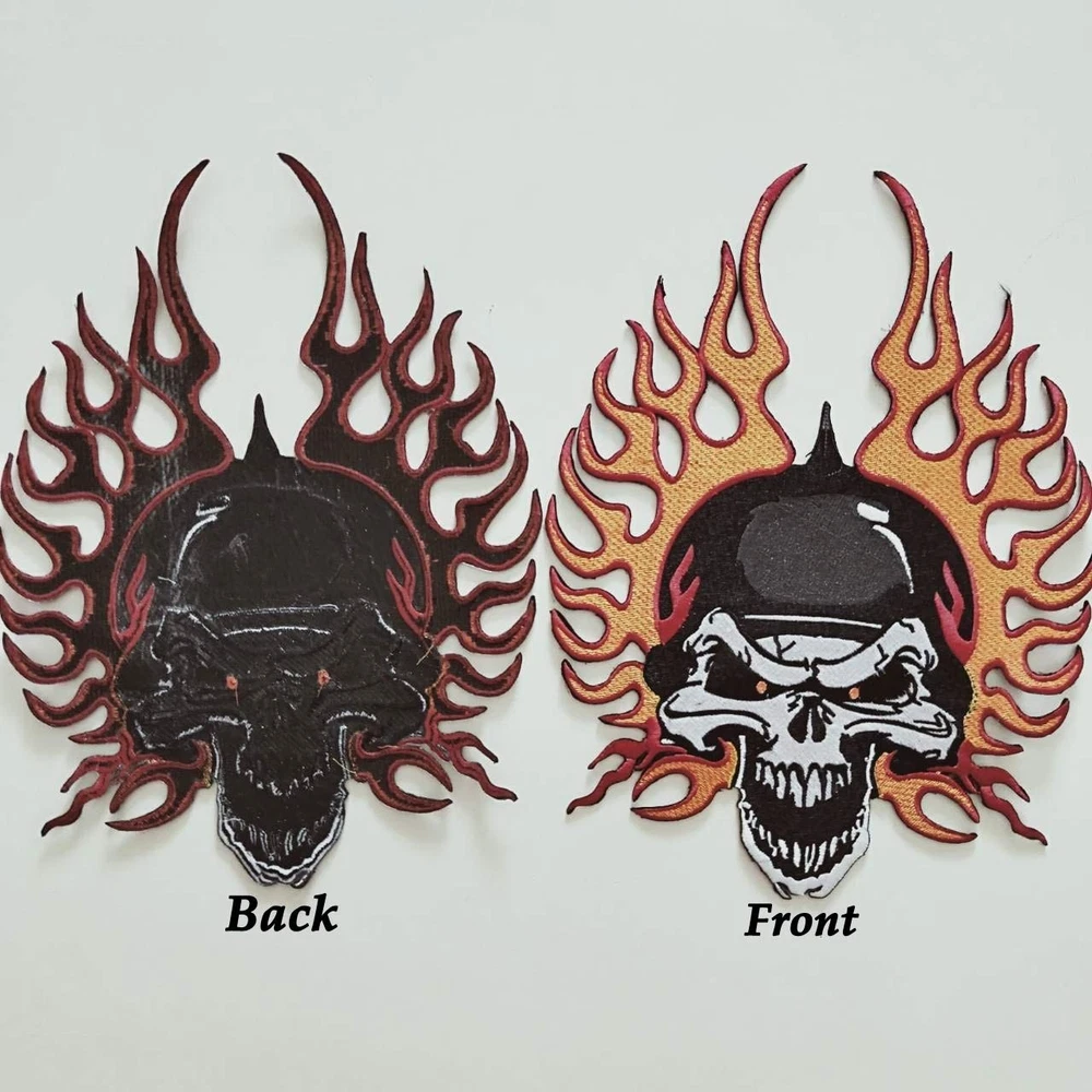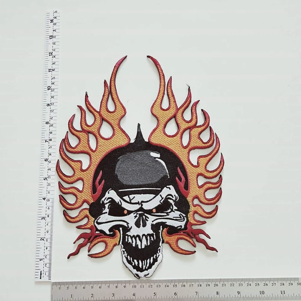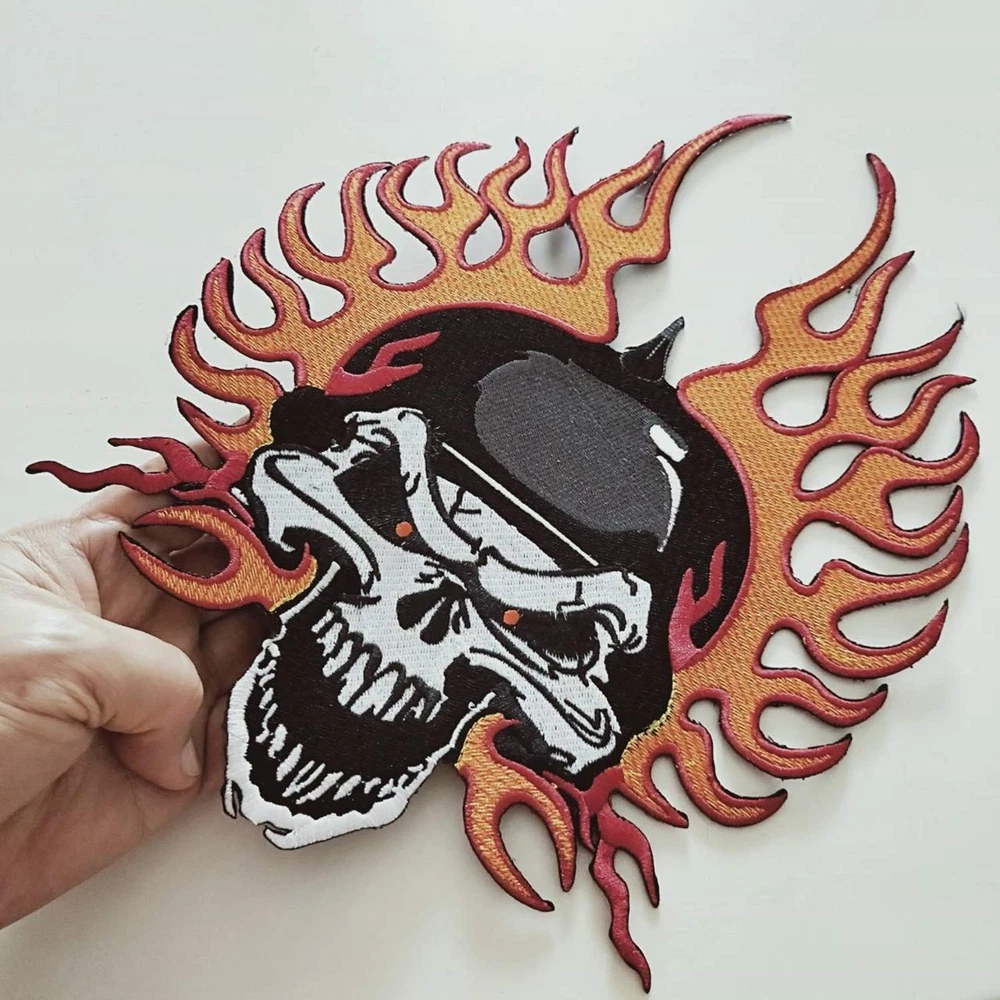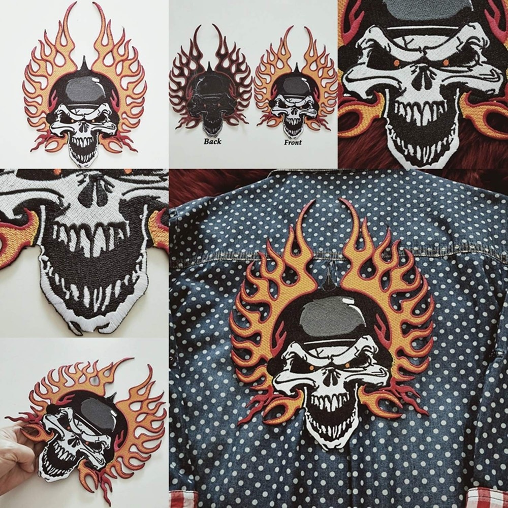 - Iron-On For Men Teens Women Charms Sew to Any Garment. A Great Creative enlivening frill for high-quality expressions and artworks ventures - Size 11.50 x 9.00 Inches ( Approx) Make your garments and different adornments alluring and uncommon. Offer life to your old garments or just add fun contacts to that new essential shirt - Note Materials : Some textures, for example, calfskin (counting softened cowhide) will burn from the connected warmth of the iron. Try not to press on patches to cowhide, nylon, plastic, waterproof material or any hard texture or cases. - Embroidered Patches: used to adorn and fix jean coat, T-shirt, pants, pullover, shoes, sacks, vests, caps, knapsack, attire, window ornament, cushion, scarf, quilt, and so forth. In the event that there are broken openings garments, you can utilize these patches to cover make appealing -Instructions: STEP 1: Set iron to "Cotton", 400 degrees for one minute. STEP 2: Thoroughly iron area of garment where the patch will be placed. STEP 3: Spray water light on the back. Position your patch where you desire. Place it on garment, embroidery facing up. STEP 4: Cover patch with damp cloth and iron for 30 seconds. STEP 5: Turn the garment inside out and iron until dry. Packing included: 1 x Embroidered Patch Skull Fire Chopper Skull For Men Teens Women Charms Iron-On or Sew to Any Garment. A Great Creative enlivening frill for high-quality expressions and artworks ventures Size 11.50 x 9.00 Inches ( Approx) Make your garments and different adornments alluring and uncommon. Offer life to your old garments or just add fun contacts to that new essential shirt Note Materials: Some textures, for example, calfskin (counting softened cowhide) will burn from the connected warmth of the iron. Try not to press on patches to cowhide, nylon, plastic, waterproof material or any hard texture or cases. Embroidered Patches: used to adorn and fix jean coat, T-shirt, pants, pullover, shoes, sacks, vests, caps, knapsack, attire, window ornament, cushion, scarf, quilt, and so forth. In the event that there are broken openings garments, you can utilize these patches to cover make appealing Instructions: STEP 1: Set iron to "Cotton", 400 degrees for one minute. STEP 2: Thoroughly iron area of garment where the patch will be placed. STEP 3: Spray water light on the back. Position your patch where you desire. Place it on garment, embroidery facing up. STEP 4: Cover patch with damp cloth and iron for 30 seconds. STEP 5: Turn the garment inside out and iron until dry. Packing included: 1 x Embroidered Patch Skull Fire Chopper Skull
