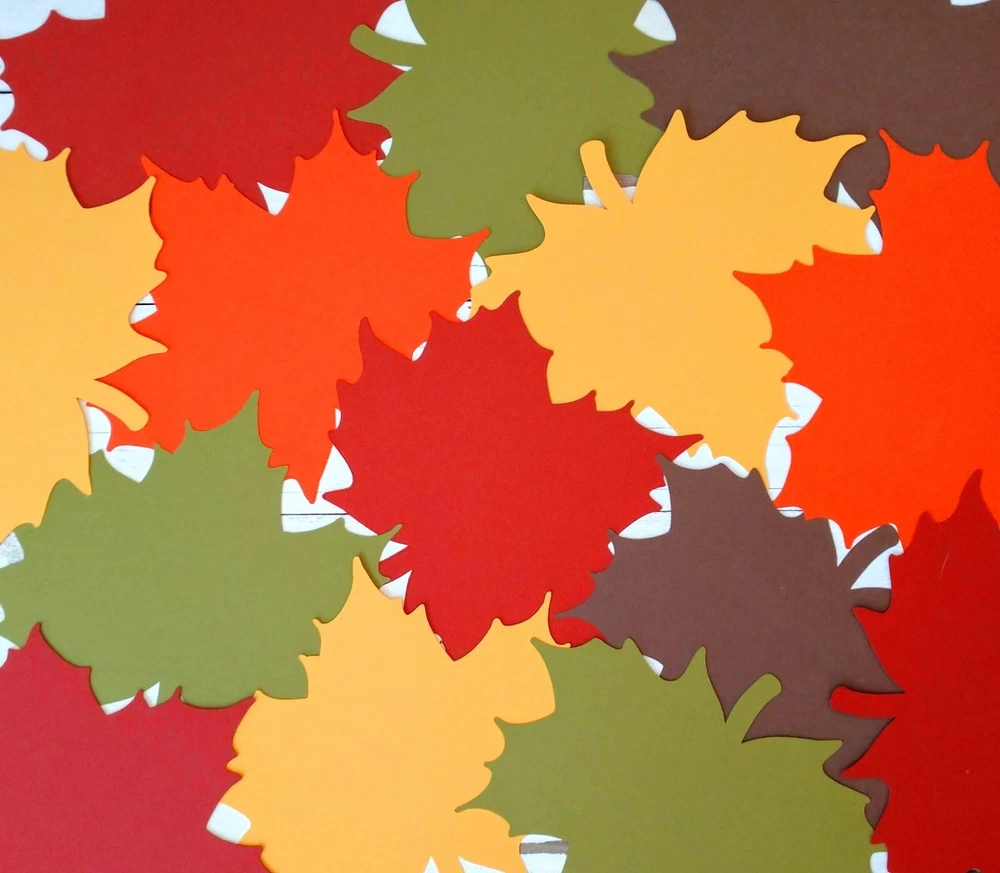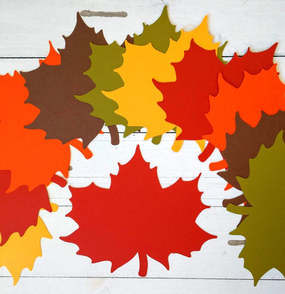These large fall leaf die cuts are perfect for autumn themed birthday parties, baby showers, bridal showers, cookouts, holiday celebrations and more. Use for table decorations, banners, posters, scrapbooking, card making, and craft projects. Set includes 10 leaf die cuts, 2 in each of the following colors: Brown, Orange, Yellow, Olive & Red. Leaf size is 5" x 6".