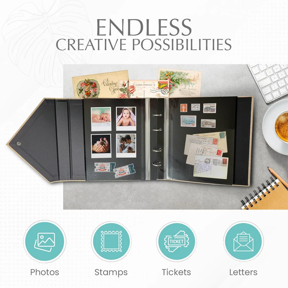 AMPLE STORAGE CAPACITY: This large photo album is sized at 10.2"L x 10.6"W with self-adhesive pages of 10.1"L x 7.6, providing 20 sheets/40 pages, capable of holding up to 80 cherished photos sized at 3x5, 4x6, and 5x7. There’s plenty of room to capture your life’s most treasured moments! ACID-FREE PROTECTION: Say goodbye to those annoying photo corner stickers. Featuring a high-quality protective film, this picture album ensures that all the text on photos remains intact and unfaded. Shield your photos from air oxidation and other pollutants to ensure the images remain timeless. SELF-ADHESIVE: Our family photo album flexibly fits photos of all sizes – 3x5, 4x6, 5x7 inches – along with tickets or souvenirs if they hold some sentimental value. The reusable pages allow for easy adjustments to your display, so you can carefully curate your memories in the way that suits you. ELEGANT LINEN COVER: Your new photo album book boasts an exquisite, retro style, with the durable linen cover not only enhancing the aesthetic appeal but also ensuring lasting longevity. You can properly safeguard your precious memories with style and grace when you choose . PERFECT GIFT CHOICE: Whether you use this picture album as a travel journal, wedding album, or baby's growth tracker, this scrapbook is the ideal gift for special people. Surprise loved ones on special occasions like Valentine's Day, Mother’s Day, or anniversaries, and continue making memories!