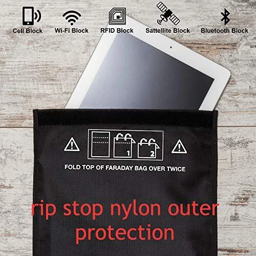 Return Policy Fast Delivery Trusted seller Faraday Bag for Tablets and Phones - Large iPad Faraday Bags - RFID Blocking Pouch - Signal Blocker for Cell Phone Anti-Tracking, Anti-Hacking, Anti-Spying Product Description FEEL SAFE with 's large faraday bags for all cell phones and tablets including iPhone and iPad. They protect your sensitive data stored on devices, as the shielding effect blocks any attempts to access the data by intercepting the signals. No more worries about your electronics, car and digital break-ins MILITARY-GRADE FARADAY CAGE – all our bags are designed with a high-quality ripstop nylon and dual layered faraday cloth lining. They have precise durable stitching and convenient double-fold velcro closure, which ensures quick access to your device and easy closure HIGH SHIELDING PERFORMANCE with no deterioration s advanced protection of data, privacy and sensitive information. Multipurpose faraday cases are not only used by military and law enforcement, but also by civilians to protect their electronics from thefts and to instantly block all wireless signals STOP CAR THEFT with our RFID blockers. Keeping your keyless car key fob in our faraday key fob protectors will prevent thieves from boosting and hacking your car key’s signal and gaining keyless entry UNIVERSAL SIZE (inner dimensions 11”x9.5”) to satisfy all your needs - our anti-theft pouches are designed to accommodate most of your mobile devices (iPad Pro, iPhone 15 Pro Max, Samsung), cards, documents, radios, toll transponders, GPS units or car keys TRUSTED LIFETIME WARRANTY – all EMP protective bags come backed with an unbeatable warranty to ensure your total satisfaction. Contact us with any questions or concerns for fast, reliable support Shipping Returns Payment Shipping Shipping is FREE to all addresses other than APO/PO boxes in the lower 48 states. All our stock ships from US-based warehouses. Shipped via USPS or UPS (depending on location and package weight) Unless stated otherwise, all orders will ship within 24-72 hours of your payment being processed. Check our feedback to see the great reviews of FAST shipping we offer. Returns Seller does not accept returns Payment We currently accept payment via eBay managed payments only. Once payment is cleared, we will dispatch your shipment within 1-3 business days. Please refer to the "Shipping" tab for more information regarding shipping speed to your destination.