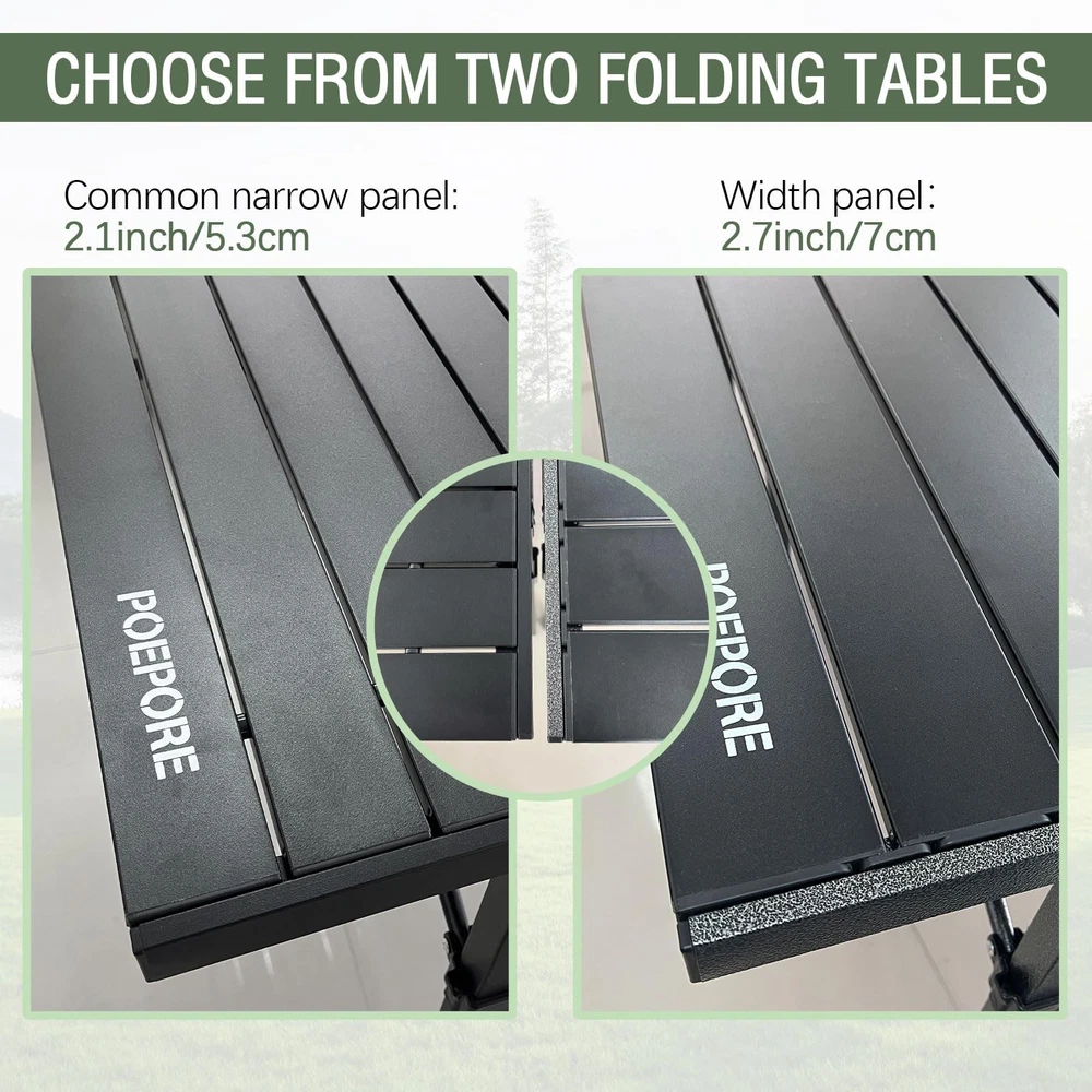 Table Design: Dining Table Furniture Leg Style: Straight Leg Is Stain Resistant: Yes Size: 54*27.5 Base Color: Black Type: Does not apply Weight: 21.5 Pounds Assembly Instructions: Require Assembly Unit Count: 1.0 Theme: Camping Handle Color: Silver Package Dimensions LxWxH: 37.75x11.5x7.5 Inches Maximum Weight Recommendation: 80.0 Handle Material: Alloy Steel gtin13: Does not apply Room Type: Outdoor Number Of Boxes: 1 Is Foldable: Yes Pattern: Solid Model Number: Aluminum Camping Table Age Range Description: Adult Model Name: Camping Table Base Type: Leg Item Shape: Rectangular Specific Uses For Product: Camping, Cooking, Dining Style: Modern Care Instructions: Wipe With Damp Cloth Material: Aluminum Brand: Poepore Top Material: Aluminum Indoor Outdoor Usage: Outdoor, Indoor Included Components: Camping Table, Mesh Storage Bag, Carry Bag UPC: Does not apply Item Package Quantity: 1 Color: Black-55*27.5-2.08In Panel Recommended Uses For Product: Dining, Camping Frame Material: Alloy Steel