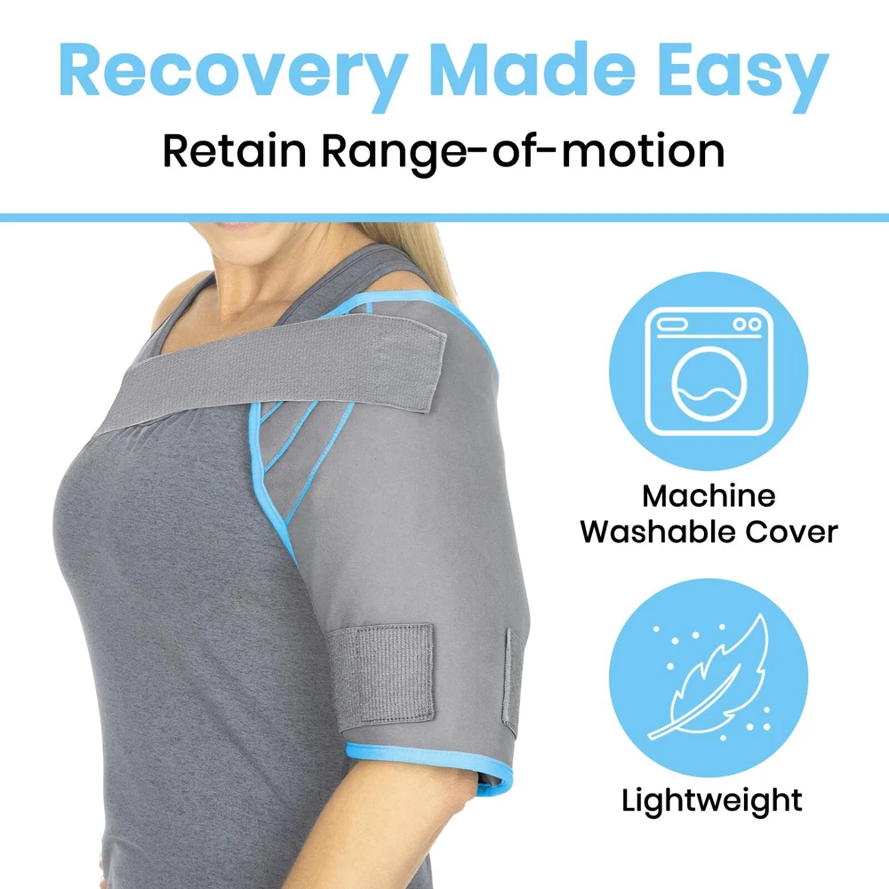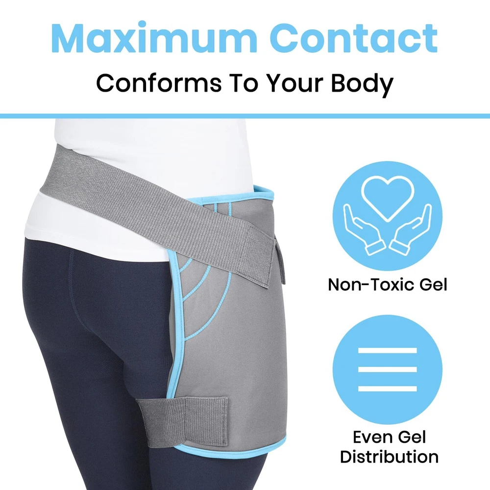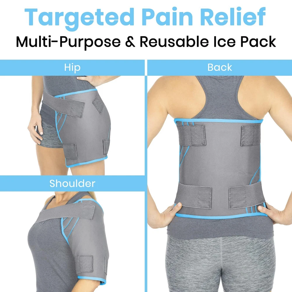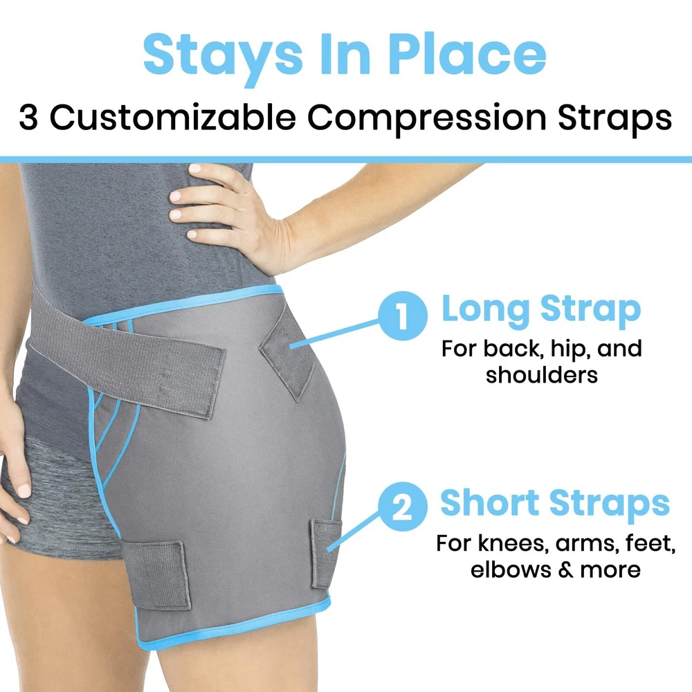 Multipurpose Cold Pack with Cover Providing soothing relief from swelling, muscle aches and pains, injury or surgery, the multi-purpose gel pack can be used for both hot or cold therapy and features a extra soft, removable cover with three fastening straps. The fastening straps are easily repositionable to securely hold the pack on the shoulder, arm, hip, abdomen, back, calf or ankle. Remaining flexible when frozen, the reusable gel pack contours to the body to alleviate general aches and pains, inflammation and swelling. Targeted Soothing Relief: Generously sized to effectively cover the shoulders, the hips, abdomen or back, the multi-purpose pack provides soothing relief from pain, stiffness and swelling due to strains and sprains, bruising, arthritis, sports injuries and post surgery care. Flexible Hot or Cold Pack: Easily warm or cool the gel pack for customizable hot or cold therapy. Store the gel pack in the freezer for two hours or more for cooling relief that remains flexible when frozen to contour to the targeted area. The versatile gel pack can also be heated in a microwave or a similar manner for effective heat therapy. Removable Soft Cover: Easily secure the gel pack inside the removable cover with dual closures. The machine-washable cover is exceptionally soft and lined with a nonslip material to hold the gel pack in place. The cover also includes three fastener straps. Place the straps in any position on the cover to secure the multipurpose pack around the knee, ankle, shoulder and more. Durable and Reusable: Soft, yet durable, the multipurpose gel pack is constructed with a strong, latex-free vinyl that is tear and split resistant. Each seam is sealed to prevent leaks for extensive reusability. What's Included: Multi Purpose Gel Pack Removable Cover TARGETED RELIEF: Ideal ice pack for back pain, lower back discomfort, and hip pain. Provides effective cooling for hip surgery recovery, hip bursitis, and sciatica. VERSATILE DESIGN: Can be used as a shoulder ice wrap, hip ice pack wrap, or for knees post-surgery. Perfect for both upper and lower body applications. EXTENDED COLD DURATION: Our cold packs for injuries are reusable and offer long-lasting cooling, ensuring consistent relief. Suitable for physical therapy, post-surgery recovery, sports injuries, and everyday aches. COMFORTABLE & FLEXIBLE: Made with soft, medical-grade gel, our ice pack contours to your body. Features an adjustable strap for a secure fit. The machine-washable cover is soft to the touch, ensuring comfort for every use. VIVE GUARANTEE: 60 day unconditional guarantee so you can purchase now with confidence.