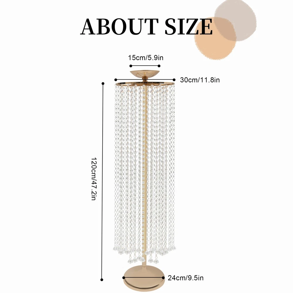 Specification Material: Iron, Stainless Steel, Acrylic Process: Electroplating and Polishing Assembly Requirement: Yes Number of Bead Curtain Strips (Inner Circle): 12 Number of Bead Curtain Strips (Outer Circle): 24 Number of Beads per Curtain (Inner Circle): 42 Number of Beads per Curtain (Outer Circle): 38 Weight Capacity: about 5kg/11lbs Opening Diameter: 15cm/5.9in Base Diameter: 24cm/9.5in Total height: 120cm/47.2in Package Size: 22*42*15cm/8.67*16.54*5.91in Net Weight: 6.3kg/13.9 lbs Gross Weight: 6.8kg/15 lbs Package Included 2* Flower Stands All Accessories for Use Welcome to the goforbigsales! ——Description—— -Flower Stand- Made of high-quality iron with electroplating and polishing treatment, it can support you to use it for a longer time. Sparkling beaded curtains with flowers can make your wedding or party venue look more elegant and eye-catching. Specification Material: Iron, Stainless Steel, Acrylic Process: Electroplating and Polishing Assembly Requirement: Yes Number of Bead Curtain Strips (Inner Circle): 12 Number of Bead Curtain Strips (Outer Circle): 24 Number of Beads per Curtain (Inner Circle): 42 Number of Beads per Curtain (Outer Circle): 38 Weight Capacity: about 5kg/11lbs Opening Diameter: 15cm/5.9in Base Diameter: 24cm/9.5in Total height: 120cm/47.2in Package Size: 22*42*15cm/8.67*16.54*5.91in Net Weight: 6.3kg/13.9 lbs Gross Weight: 6.8kg/15 lbs ——Key Features—— Nice Decoration It can place flowers, candles, and other decorations. You can also decorate it with hanging vines, and gauze to make your wedding or party site look more neat and eye-catching. Sparkling Beaded Curtain It has two inner and outer circles with a total of 36 acrylic octagonal bead chains, each string has a pendant, adding extra sparkle to make your wedding, party, or family more luxurious. Durable and Sturdy : Made of high-quality iron and polished by electroplating, it has good rust and corrosion resistance. Stable and Firm: It is made of high-quality material and can effectively support about 11 pounds of weight. The screws at the top can reinforce the whole stand, and the enlarged 9.5-inch base can also ensure its stability and avoid the risk of its accidental collapse. Reuse: When the wedding or party is over, you can put it away for the next use, saving you more money cost. Easy to Assemble: We provide the videos needed for installation to help you easily complete the assembly process. Easy to Clean: The electro-polished surface is very smooth and not easy to leave dust and stains, you can wipe it with a damp cloth. Surprise Gift: The exquisite appearance makes it undoubtedly an ideal gift to celebrate someone's housewarming or new wedding or various anniversaries. Protective Shipping: To prevent the product from being damaged in transit, we are equipped with cardboard packaging, and each accessory is paired with a protective sleeve. Details Stainless Steel Ring: It will not rust, prolonging its service life. Fan-shaped Bracket: Its fan-shaped bracket increases the load-bearing capacity of the product, allowing the hanging beads to sway without falling. Application It is suitable for birthday parties, bachelor parties, baby showers for men and women, school opening ceremonies, graduation party decorations, candy buffets, dessert tables, Christmas decorations, New Year decorations, commercial celebration decorations, and party photo booths. It can also be used for daily occasion decoration, such as living room, bedroom, office, formal dining room, etc. Package Included 2* Flower Stands All Accessories for Use Notes: Please allow the slight color difference caused by the shooting light and 1-3cm error due to manual measurement and make sure you do not mind before ordering Payment Delivery details Terms of sales About us Contact us Payment We accept ebay payment 。 Fees such as import duties, taxes are not included in the item price or shipping costs. These charges are the buyer's responsibility. Delivery details Shipping: 2-9 working days to: USA Terms of sales We maintain high standards of excellence and strive for hundred percent customer satisfaction. Feedback is very important to us. We hope that you contact us immediately before you give neutral or negative feedback, so that we can address your concerns. It is impossible to address issues if we do not know about them! About us Your satis faction is our ultimate goal. We work hard to earn your trust and future business. Our certified technicians have tested each item before shipping. The unit comes with 1 year limited warranty on all manufacturing defects. a) If you receive a defective item, you may return it or ask for a discount. Please contact us within 14 days after you receive the package. b) What you returned must be intact and in its original packaging as re? u. Customer is responsible for shipping costs of the returned item. c) We will cover the cost of shipping back t with the shipping rate indicated in the registration page. We will send you a new unit or refund the full payment you paid. Thank you. Contact us Business Hour Business Hour: Monday To Friday: 8:30 AM to 5:00 PM (Beijing China time) Due to time zones, our reply to your questions may not be immediately. But within above working time, we will reply your email within 24 hours. If it's non-workdays, please kindly be patient and wait till Monday. Please contact us with ebay message. Please feel free to contact us if you have any questions. Monday To Friday: 8:30 AM to 5:00 PM (Beijing China time) Due to time zones, our reply to your questions may not be immediately. But within above working time, we will reply your email within 24 hours. If it's non-workdays, please kindly be patient and wait till Monday. Please contact us with ebay message. Please feel free to contact us if you have any questions.