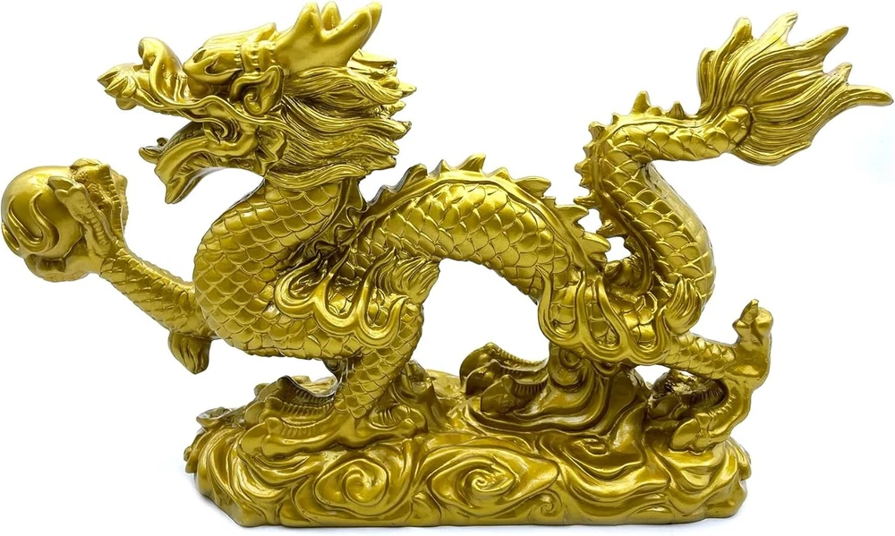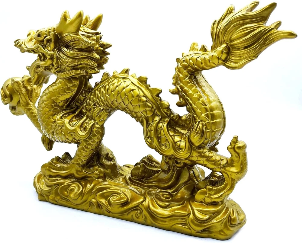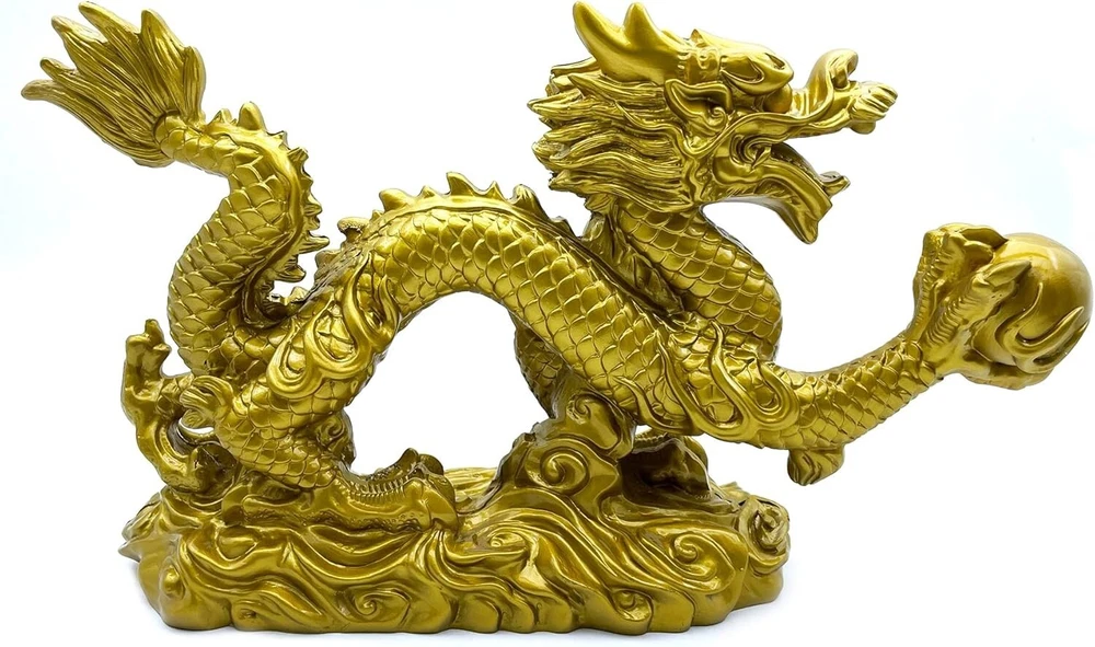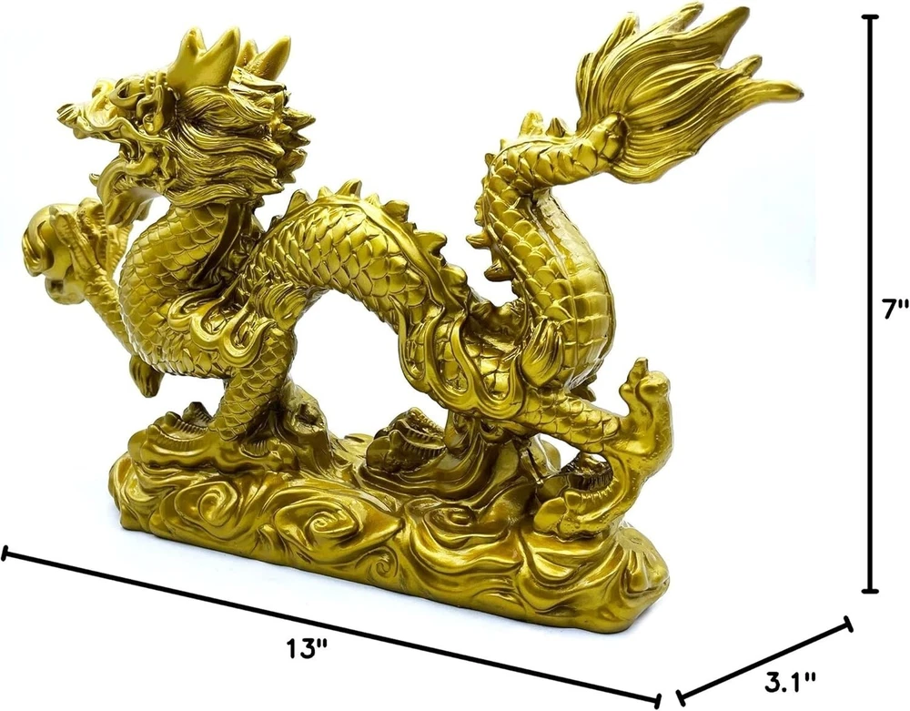 Large Gold Dragon Figurines - 13-Inch Feng Shui Decor for Fortune & Protection