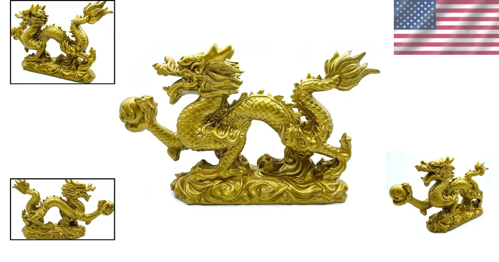 Large Gold Dragon Figurines - 13-Inch Feng Shui Decor for Fortune & Protection ‹ › ‹ › ‹ › ‹ › ‹ › ‹ › ‹ › ‹ › ‹ › Large Gold Dragon Figurines - 13-Inch Feng Shui Decor for Fortune & Protection Welcome prosperity and safeguard your space with our stunning Large Gold Dragon Figurine. Measuring approximately 13 x 3.1 x 7 inches, this exquisite piece is crafted from high-quality resin, embodying the powerful symbolism of Feng Shui. Features: Dimensions: About 13 x 3.1 x 7 inches Material: High-quality resin for durability Beautiful golden finish that enhances the aesthetic of any room Symbolizes protection, fortune, and success Benefits: Ideal for enhancing positivity and warding off negativity in your home or office Attracts good luck and prosperity, making it an excellent addition to any space Serves as a unique gift for friends and loved ones, perfect for special occasions A beautiful decorative statue that complements both modern and traditional decor Encourages a sense of calm and safety in your personal and professional environment Why choose our Large Gold Dragon Figurine? This striking representation of the Chinese Feng Shui dragon is not only a captivating decor piece but also a meaningful symbol of success and protection. By placing this figurine in your home or office, you are making a statement about your aspirations for fortune and well-being. Its elegant design and powerful symbolism make it a thoughtful gift for anyone who values good fortune and home harmony. Elevate your living or workspace and invite positive energy into your life with our Large Gold Dragon Figurine. Order yours today and let it guard your domain with grace and strength! Shipping Free & Fast Shipping - We offer free shipping to most of the USA with a normal delivery time of 3-7 days. However, due to the current situation, additional delivery time (up to 3 weeks) may be required for some items. Alternative Carriers - We may use alternative carriers (e.g. USPS, FedEx, UPS, etc.) to ensure your package arrives safely and on time. Due to the use of multiple carriers, we are unable to provide a tracking number automatically. Handling Time - Orders are processed and shipped within 1-2 business days of receiving cleared payment. Shipping Restrictions - Shipping to Alaska, Hawaii, Puerto Rico, Guam, and other US territories may incur shipping charges or delivery restrictions. Please contact us before ordering, or your order can be refunded/cancelled. State Restrictions - There may be restrictions based on your state of purchase. For example, certain items may not be shipped to California due to state regulations. Contact for Tracking Updates - If you require tracking updates or have any concerns about the delivery of your order, please feel free to contact us, and we will be happy to assist you. Return 30-Day Hassle-Free Returns - We want you to be completely satisfied with your purchase. If you are not, you can return the item within 30 days of receiving it for a full refund or exchange. Easy Return Process - To start a return, simply contact us and we will provide you with a prepaid return shipping label and detailed instructions. Restocking Fee - There are no restocking fees for returns. However, the buyer is responsible for return shipping costs if the return is not due to a seller's error. Refund Processing Time - Refunds will be processed within 5 business days of receiving the returned item in its original condition. Payment We accept all major credit cards, PayPal, and Apple Pay for your convenience. Your payment information is secure and encrypted to ensure a safe and seamless transaction. Please complete your payment within 3 days of purchase to avoid any delays in shipping. Feedback Your feedback is extremely important to us. We strive to provide the best products and customer service possible. If you are satisfied with your purchase, please take a moment to leave us a positive review. If you have any concerns or issues with your order, please contact us before leaving negative feedback. We are committed to resolving any problems and ensuring your satisfaction. Contact Us If you have any questions or concerns, please feel free to reach out to our customer support team. You can contact us through the eBay messaging system. We are available Monday to Friday, 9:00 am to 5:00 pm EST, and we will do our best to respond to your inquiry within 24 hours. Thank you for supporting our small family business! Handmade: Chinese Dragon Statue Provenance: Chinese Dragon Statue Country/Region of Manufacture: Chinese Dragon Statue Culture: Chinese