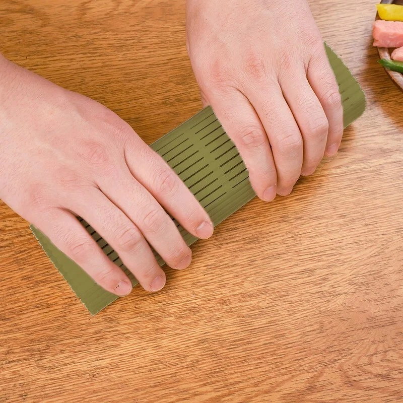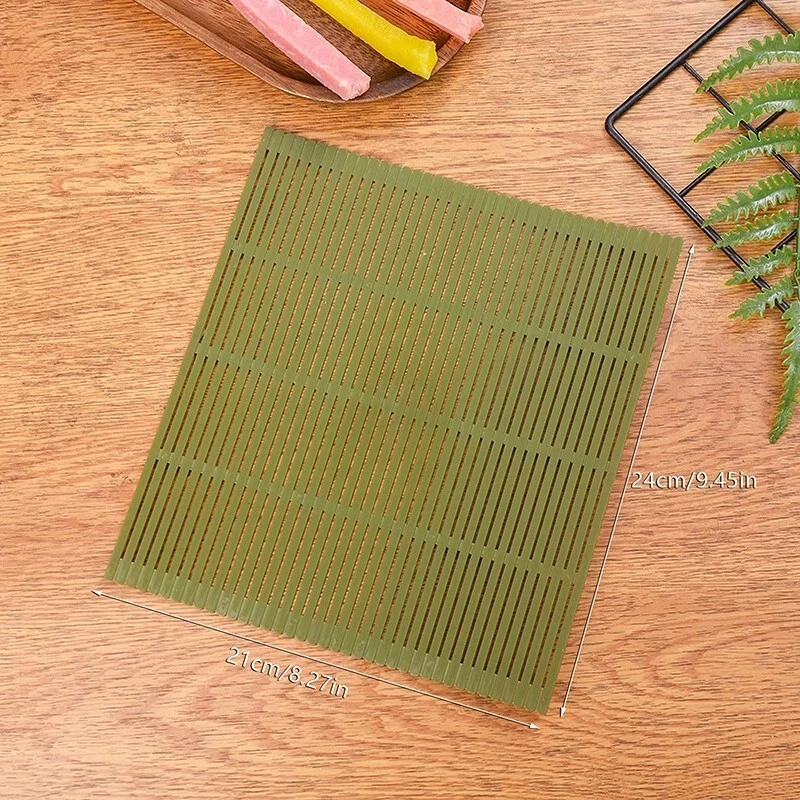 Sushi Roll Large Green Plastic Bamboo Mat Kimbap Making Tools Onigiri Rice Molds Create delicious sushi rolls and onigiri at home with this large green plastic sushi tool set. Designed for ease and convenience, it includes essential tools such as rice paddles, a bamboo sushi mat, and a sushi-making machine. Perfect for beginners and sushi enthusiasts, this kit makes crafting professional-quality rolls simple and fun. Durable, lightweight, and easy to clean, it's a must-have for any home kitchen or sushi-making adventure. Features: 1.Sushi rolling-- sushi mat roller these tools are essential for making sushi at home and can help you make delicious sushi. with the help of this mat, you can make sure that it does not loosen easily when cutting sushi. 2.Excellent material:sushi mat made of high-quality material,non-toxic,heat-resistant and corrosion-resistant and durable characteristics,safe and hygienic can be used with confidence. 3.Non-stick design:sushi mat plastic surface has a convex design,can effectively achieve the effect of non-stick,no longer need to add a layer of cling film on the surface to use. 4.Best gift - the sushi rolling mat is perfect for gift for your friends or lover, especially great for mother's day, halloween, christmas and suitable for family, travelling, camping and festival party. 5.Rolling mat-- sushi making supplies hosting a sushi party is a fun, hands- on culinary experience that your guests will never forget! you can also cook sushi rolls with your . it’ll teach your something new, and develop the fine motor skills of their hands. Specification: Item: Sushi-making kit Type: kimbap sushi roll Material: Plastic Size:24x21cm/9.45x8.27in Usage: Sushi Tool Package Included: 1 x Pc sushi roll mat