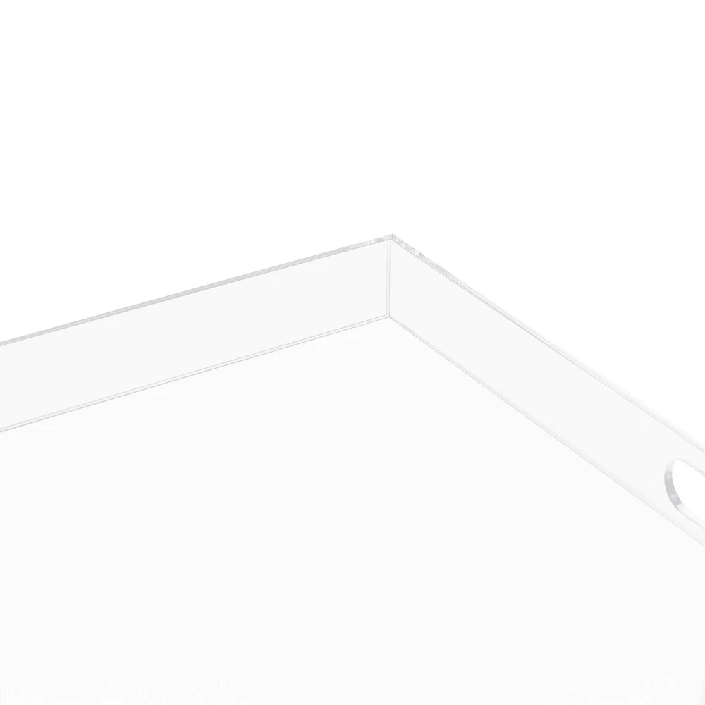 Large Acrylic Food Serving Tray with Handle Countertop Organiser for Ottoman Description A tray is a good helper in our daily life. This serving tray is made of transparent acrylic, which is sturdy and durable, so you can use it for a long time. With a variety of uses, this serving tray can meet various needs in your daily life, such as placing food, storing small items. It will be a good choice for you! Key Features High-end Material: This serving tray is made of transparent acrylic, which is sturdy, durable, and can be used for a long time, saving your use cost to a certain extent. Beautiful Appearance: The serving tray is transparent as a whole. Matched with smooth lines, it is full of modern and fashion sense. Powerful Function: This serving tray is waterproof. In addition to placing food and drinks, this serving tray can also be used to store daily objects, such as keys, cosmetics, and so on, reducing room clutter, and it has a high cost-performance ratio. Ready to Use: This serving tray does not need to be installed. You can use it directly, saving your time. Ideal Gift: With a fashionable appearance and enough space, this serving tray can be regarded as a precious gift for housewarming, birthdays, and holidays. Small Floor Area: The size of the serving tray is 23.62*23.62inch, so you can put it on the tea table, dining table, or make-up table at will to facilitate your life without occupying too much space. Easy to Clean: The serving tray features a smooth surface and a small size, which undoubtedly reduces the difficulty of cleaning. You can clean it directly with a soft and wet cloth or wet towel. Quality Assurance: We have been working hard to provide better service and quality for our customers, which is our goal. If there is any quality problem with our serving trays. Please contact us in time. Details Handle: There is a handle on both sides of the serving tray, and its size is 3.94*1.18inch, through which you can easily move the tray and it is not easy to drop. Baffles&Sealed Corners: Baffles and sealed corners can prevent water leakage, as well as prevent objects from falling, reducing losses. Application This serving tray can be used for guests to provide food, appetizers, coffee, beverages, and desserts, and it can be placed at the door, desk, bathroom, kitchen or bar, etc. In addition , it can also be used to store daily items, such as cosmetics. Specification Color: Transparent Shape: Square Style: Modern Material: Acrylic Net Weight: 3kg/6.61lbs Gross Weight: 3.5kg/7.72lbs Serving Tray Size: 60*60*5cm/23.62*23.62*1.97inch Thickness of Serving Tray: 5mm/0.2inch Size of Handle: 100*30mm/3.94*1.18inch Package Size: 61*61*5.5cm/24.02*24.02*2.17inch Package Included 1*Serving Tray Notes Please do not use sharp tools to clean it and do not knock on the serving tray. Please allow the slight color difference caused by the shooting light and 1-3cm error due to manual measurement, and make sure you do not mind before ordering. Payment Delivery details Terms of sales About us Contact us Payment We accept ebay payment 。 Fees such as import duties, taxes are not included in the item price or shipping costs. These charges are the buyer's responsibility. Delivery details Shipping: 2-9 working days to: USA Terms of sales We maintain high standards of excellence and strive for hundred percent customer satisfaction. Feedback is very important to us. We hope that you contact us immediately before you give neutral or negative feedback, so that we can address your concerns. It is impossible to address issues if we do not know about them! About us Your satis faction is our ultimate goal. We work hard to earn your trust and future business. Our certified technicians have tested each item before shipping. The unit comes with 1 year limited warranty on all manufacturing defects. a) If you receive a defective item, you may return it or ask for a discount. Please contact us within 14 days after you receive the package. b) What you returned must be intact and in its original packaging as re? u. Customer is responsible for shipping costs of the returned item. c) We will cover the cost of shipping back t with the shipping rate indicated in the registration page. We will send you a new unit or refund the full payment you paid. Thank you. Contact us Business Hour Business Hour: Monday To Friday: 8:30 AM to 5:00 PM (Beijing China time) Due to time zones, our reply to your questions may not be immediately. But within above working time, we will reply your email within 24 hours. If it's non-workdays, please kindly be patient and wait till Monday. Please contact us with ebay message. Please feel free to contact us if you have any questions. Monday To Friday: 8:30 AM to 5:00 PM (Beijing China time) Due to time zones, our reply to your questions may not be immediately. But within above working time, we will reply your email within 24 hours. If it's non-workdays, please kindly be patient and wait till Monday. Please contact us with ebay message. Please feel free to contact us if you have any questions.