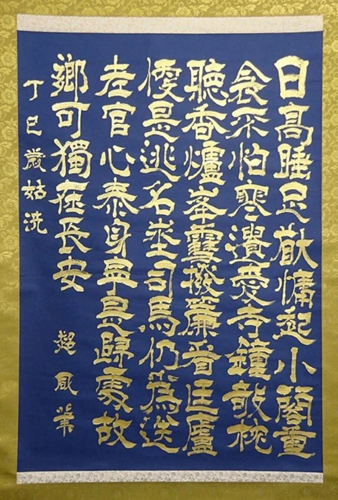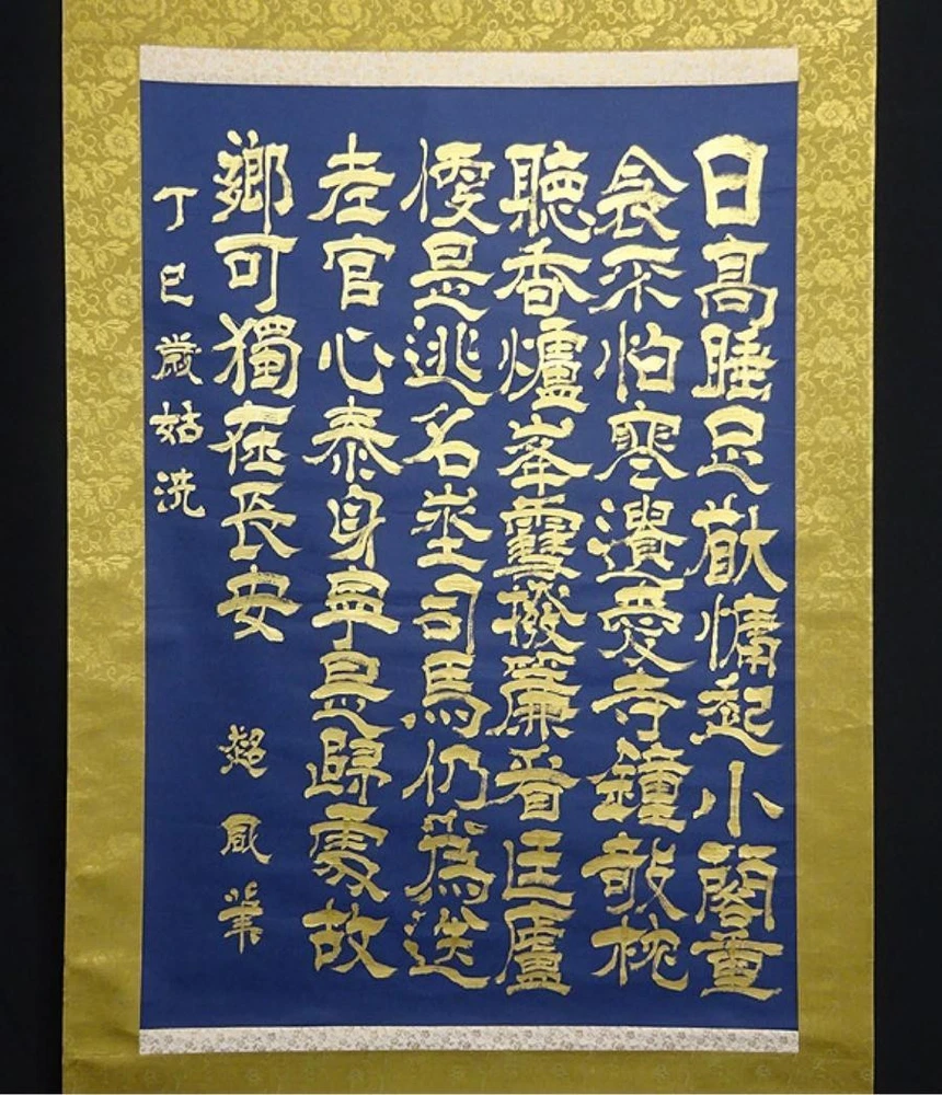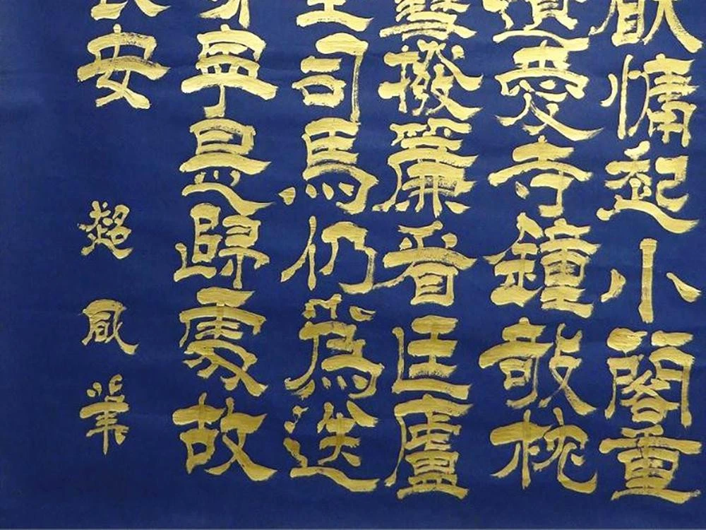 Item Title Large Hanging Scroll Super Sailing Chinese Book Navy Paper Gold Handwritten A092 Payment Supports managed payments Please pay within 5 days after auction is finished. About Us We are located in Japan. It's our pleasure to make you happy by proposing our recommend item. If you have any questions or request about items, please feel free to ask us. International Buyers - Please Note: -Import duties, taxes, and charges are not included in the item price or shipping charges. These charges are the buyer's responsibility. -Please check with your country's customs office to determine what these additional costs will be prior to bidding/buying. -These charges are normally collected by the delivering freight (shipping) company or when you pick the item up - do not confuse them for additional shipping charges. -We do not mark merchandise values below value or mark items as - gifts - The US and International government regulations prohibit such behavior. Thank you for your understanding.