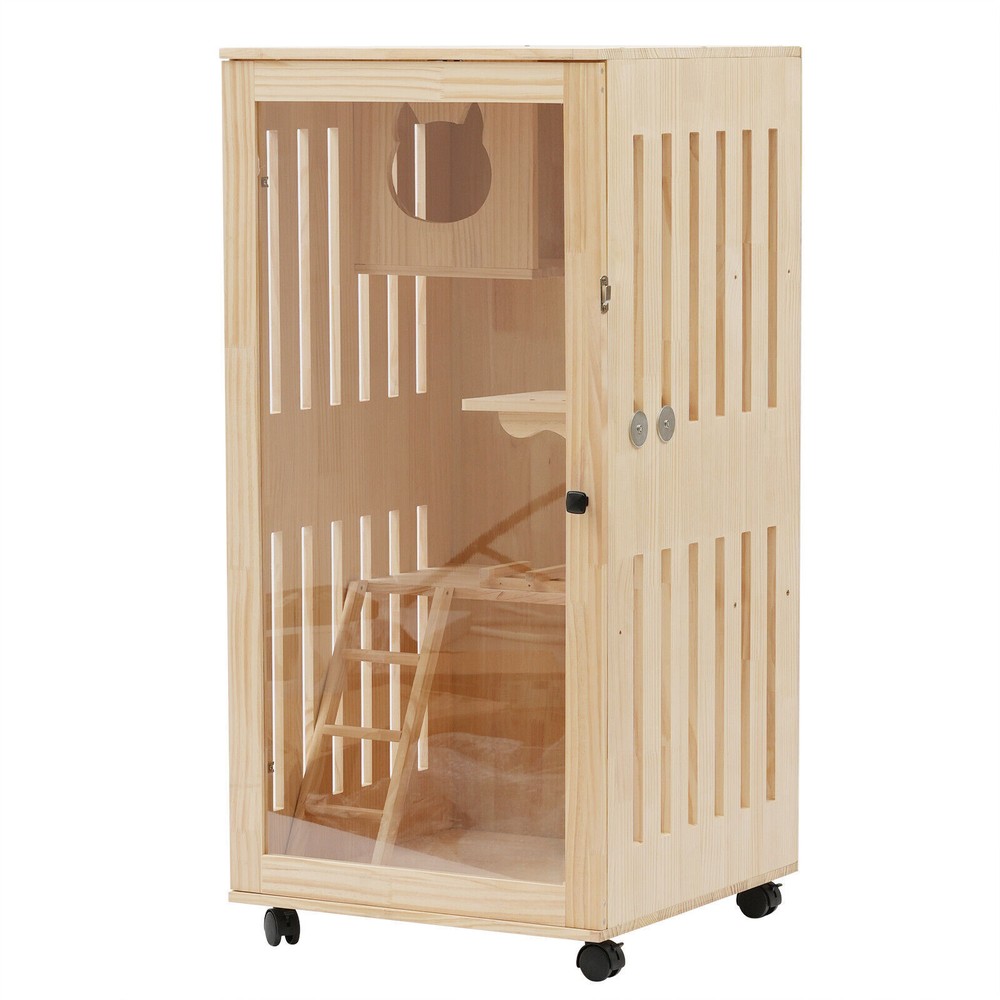 Large Indoor Wooden Cat Enclosure with Ramp & Covered Cat House Kit
