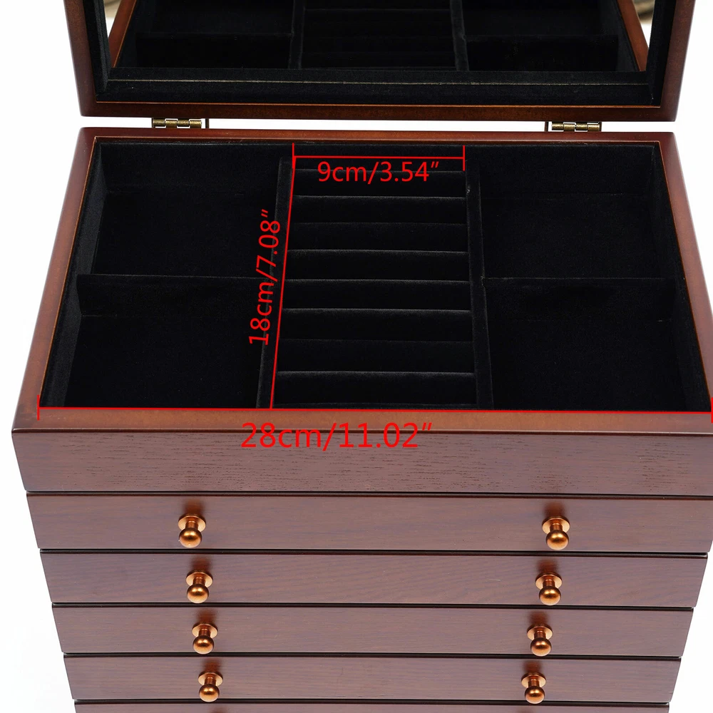 Specifications: Colors: white/ Walnut Color Layer: 6 layers Types: without mirror Material: Wooden Sizes: 31x20x24.5 cm/12.2*7.9*9.6 inch Features: - This is a retro wooden jewellery box. Fashionable and practical. - Made of high quality wood. - Can hold many kinds of jewelry. - No need to assemble. - A great gift for your mother/girlfriend/sister. Package included: 1 x Wooden Jewellery Box On Feb 18, 2025 at 19:16:36 PST, seller added the following information: