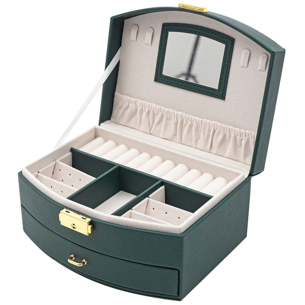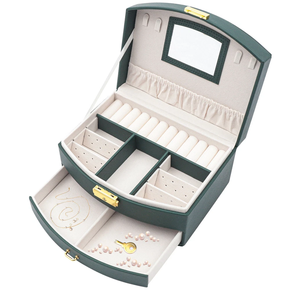 Large Jewelry Storage Case Jewelry Box Organizer for Women Girls with 2 Drawers Large Jewelry Storage Case Jewelry Box Organizer for Women Girls with 2 Drawers Description: Are you still having trouble finding a particular piece of jewelry because you don't have a special storage box for it? Are you looking forward to having a sophisticated, personalized jewelry box? Then look no further than this double drawer jewelry box. With this jewelry box, your jewelry will have a cozy and comfortable home. Key Features: High-quality Materials : The box is made of high-quality PU and flocked fabric. The PU surface gives the box a beautiful look and is hard-wearing and easy to clean, giving the box a long life. The soft material of the flocked fabric keeps your jewelry well protected. Waterproof Casing: The casing is made of waterproof, mold-resistant PU, so your jewelry is well protected. Large Volume: With its double drawer design, this jewelry box can hold more jewelry than those of a single drawer, so you no longer have to worry about storing your many pieces of jewelry. Clear Sorted : Each layer of the box has a sectioned divider, which allows you to keep your jewelry in a separate place for easy access. Great Look : The dark green casing and gold clasp give the box a stylish, classic look. The white velvet lining of the box complements your jewelry beautifully. Partition Design: The jewelry box has removable compartments, which allows for flexible storage space. Earrings, large earrings, bracelets, rings, and necklaces all have a special place. Wide Application: The stylish appearance and practical design of this jewelry box make it suitable for both home use and gift-giving. The large capacity of the box makes it suitable for all kinds of jewelry. Customer Service: Our goal is to provide quality products and services. If you have any questions, please feel free to contact us. We will reply and solve the problem for you as soon as possible. Details High-quality Mirror: The jewelry box with a high-quality mirror allows you to store your jewelry and use it for make-up at the same time. The mirror on the box also makes it easier to put on your jewelry. Sturdy Carry Handle: The carrying handle is secured with a metal clasp, so it is sturdy and durable. And the carry handle is designed to make it easy for you to carry. Flocked Lining: The lining of this jewelry box is made of soft flocked fabric, which is comfortable to the touch. The delicate flocked fabric protects the jewelry well. Locking Design: The box comes with a locking design for better storage and carrying of jewelry. The lustrous metallic clasp enhances the overall quality of the box. Application This jewelry box is designed to hold a wide range of jewelry and to keep it well sorted. This beautiful jewelry box is suitable for home or travel storage and gift-giving. Specification Material: PU, Flocked Fabric Product Size: 20*16*10cm/7.87*6.29*3.93in Package Size: 21*16.7*11.7cm/8.26*6.57*4.60in Net Weight: 0.7kg/1.54lbs Gross Weight: 0.9kg/1.32lbs Package Included 1 x Jewelry Box Notes Please allow the slight color difference caused by the shooting light and 1-3cm error due to manual measurement. Please make sure you do not mind before you order. Payment Delivery details Terms of sales About us Contact us Payment We accept ebay payment 。 Fees such as import duties, taxes are not included in the item price or shipping costs. These charges are the buyer's responsibility. Delivery details Shipping: 2-9 working days to: USA Terms of sales We maintain high standards of excellence and strive for hundred percent customer satisfaction. Feedback is very important to us. We hope that you contact us immediately before you give neutral or negative feedback, so that we can address your concerns. It is impossible to address issues if we do not know about them! About us Your satis faction is our ultimate goal. We work hard to earn your trust and future business. Our certified technicians have tested each item before shipping. The unit comes with 1 year limited warranty on all manufacturing defects. a) If you receive a defective item, you may return it or ask for a discount. Please contact us within 14 days after you receive the package. b) What you returned must be intact and in its original packaging as re? u. Customer is responsible for shipping costs of the returned item. c) We will cover the cost of shipping back t with the shipping rate indicated in the registration page. We will send you a new unit or refund the full payment you paid. Thank you. Contact us Business Hour Business Hour: Monday To Friday: 8:30 AM to 5:00 PM (Beijing China time) Due to time zones, our reply to your questions may not be immediately. But within above working time, we will reply your email within 24 hours. If it's non-workdays, please kindly be patient and wait till Monday. Please contact us with ebay message. Please feel free to contact us if you have any questions. Monday To Friday: 8:30 AM to 5:00 PM (Beijing China time) Due to time zones, our reply to your questions may not be immediately. But within above working time, we will reply your email within 24 hours. If it's non-workdays, please kindly be patient and wait till Monday. Please contact us with ebay message. Please feel free to contact us if you have any questions. shipping notice Can not ship to Puerto Rico,Alaska/Hawaii Feature 6 Easy installation Matetial 1 high quality & Duable OE/OEM Part Number Does not apply MPN ( MPN ) n/a Note: Do not send to the Canary Islands Destination never sent to or arrived: Canarias Island EAN Does not apply UPC Does not apply Brand Unbranded Type Display Case Items Included Jewelry Box Suitable For Necklace Theme Vintage Material PU, Flocked Fabric Color Green Lining Material Flocked Lining Features Fast shipping On Feb 23, 2025 at 19:03:41 PST, seller added the following information: