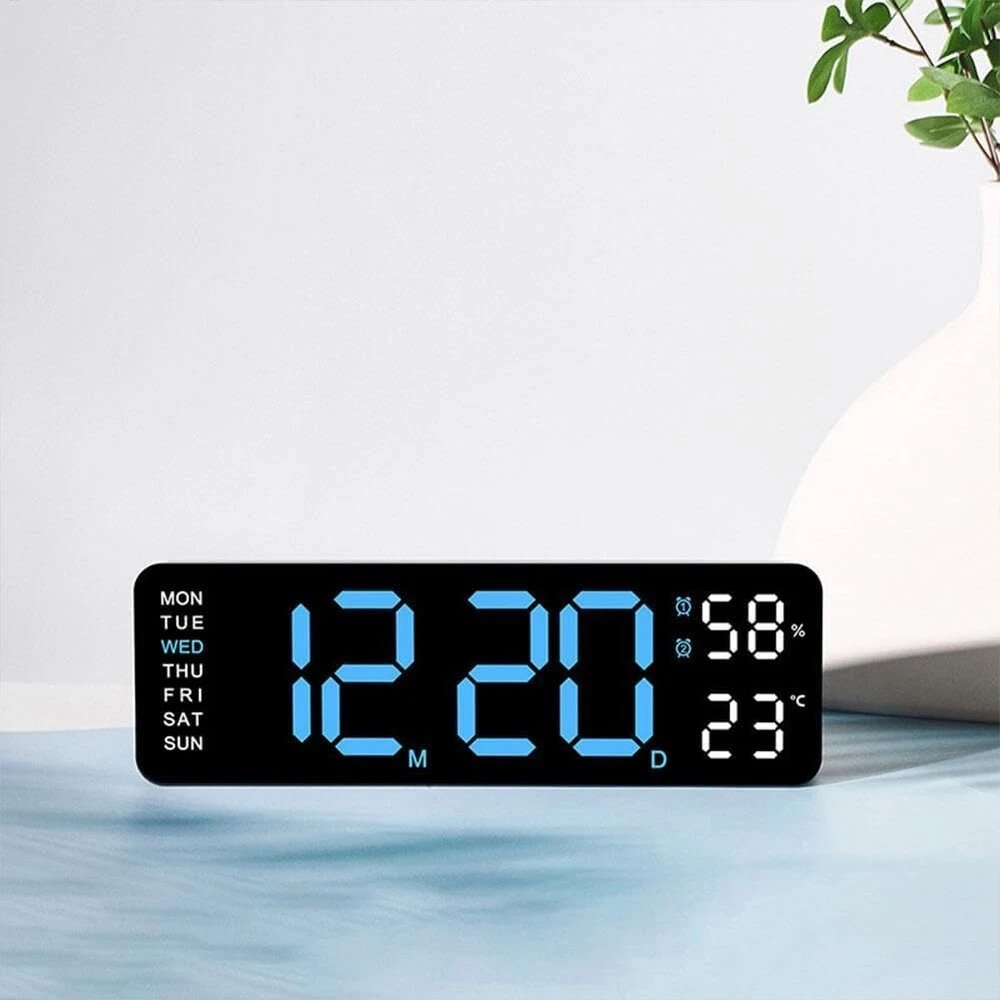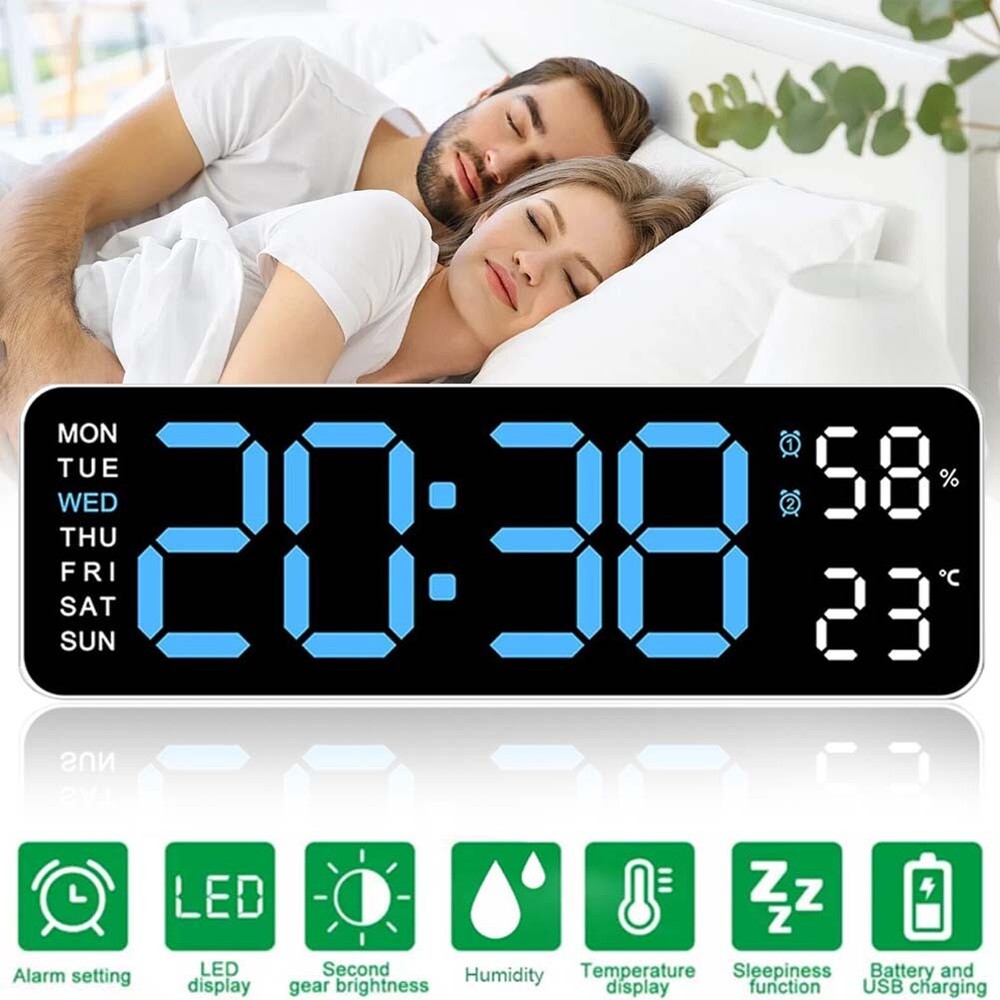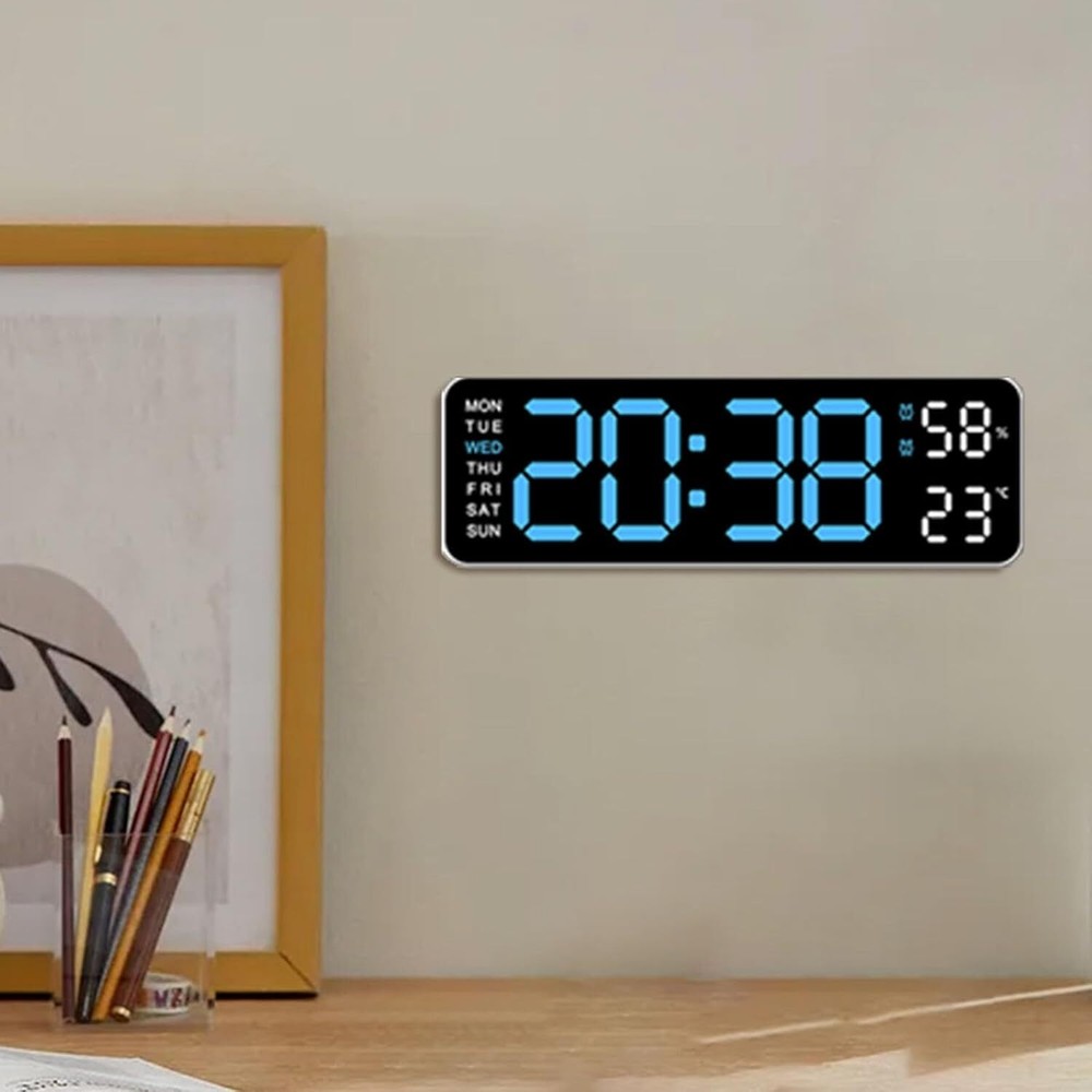 Description: Multiple time display methods: The multifunctional electronic clock can display various information such as time, date, week, temperature, etc., making it convenient for users to understand the current time and date, and can switch display according to their needs. Multiple alarm settings: The electronic clock can set multiple alarms, and different alarm reminder functions can be set according to the user's needs and schedule to ensure that the user wakes up on time or engages in other activities. Brightness adjustment function: Multi functional electronic clocks are usually equipped with brightness adjustment function, which can automatically adjust the brightness of the display screen according to changes in ambient light, ensuring clear visibility under different lighting conditions, and also avoiding the impact of high or low brightness on users. Battery backup function: Multifunctional electronic clocks usually have a battery backup function, which can maintain normal operation even in the event of a power outage or lack of power, ensuring the accuracy of time and the normal use of alarm functions. Accurate time display: Multi functional electronic clocks usually use high-precision clock chips, which can provide accurate time display and avoid the impact of time errors on users. Specification: Color: White Shell Blue Light Display Type: Digital Style: Modern Size: 22.8*3.5*7.5cm Power Source: Corded Electric Battery: 2x AAA Battery(not include) Shape: Rectangular Indoor/Outdoor Usage: Indoor Theme: Plain Frame Material: Plastic Are Batteries Included: No Mounting Type: Wall Mount Alarm Clock: Yes Watch Movement: Automatic Operation Mode: Electrical Clock Form: Multi Display