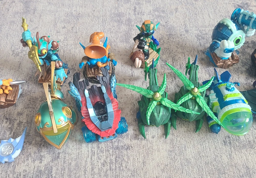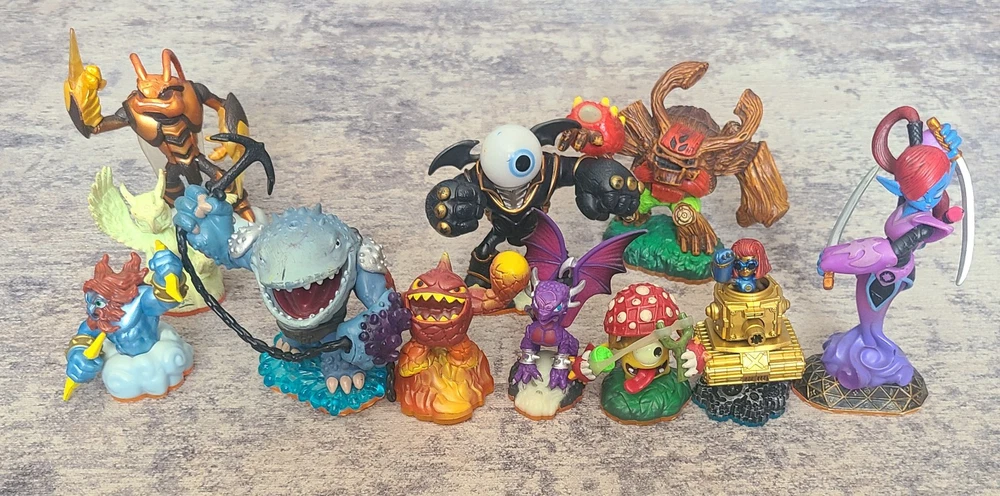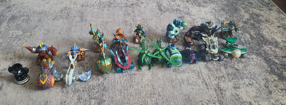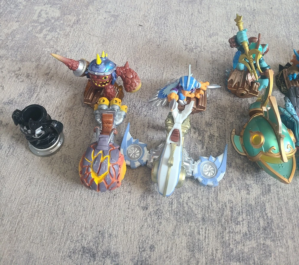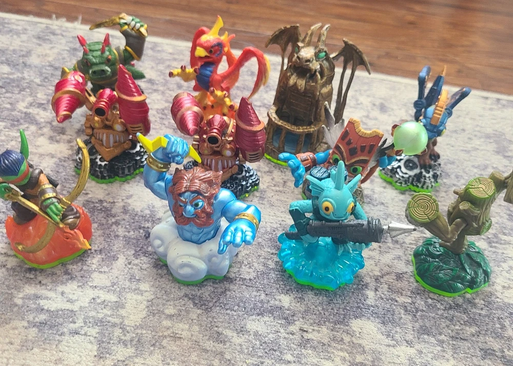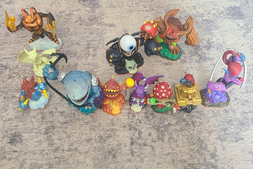 Embark on an adventure with this extensive collection of Skylanders figures, perfect for fans and collectors alike. These characters from the renowned Activision franchise offer a variety of elements and abilities, ensuring that your gameplay is as diverse as your collection. Whether you're expanding your existing setup or starting anew, these Skylanders are ready to bring your virtual world to life. Each figure is designed with intricate details that capture the essence of the character's in-game appearance, making them a visually appealing addition to any display or game setup. Dive into the expansive Skylanders universe and create your own unique combinations for an immersive gaming experience.